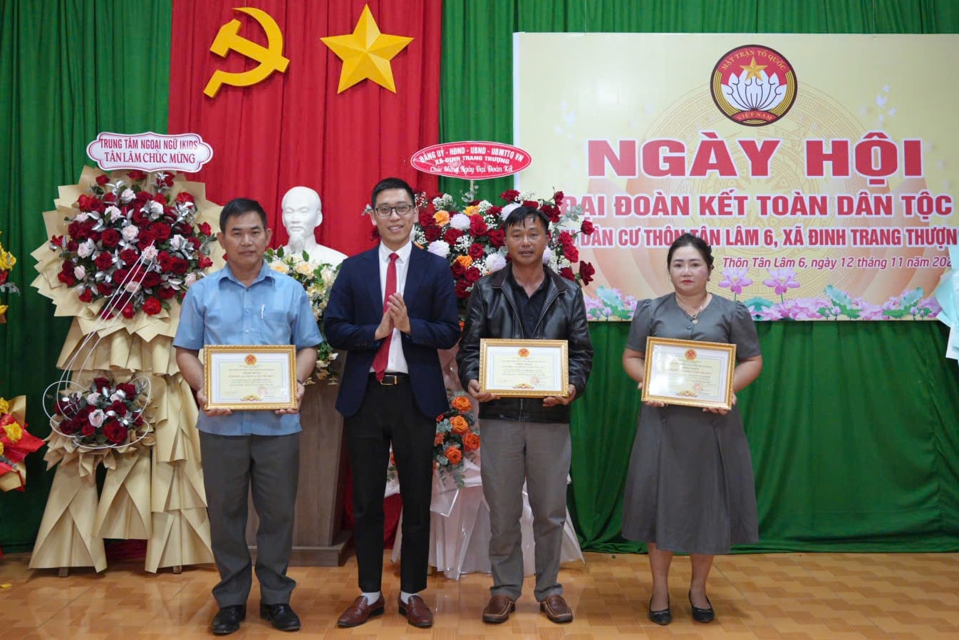 Xã Đinh Trang Thượng tặng giấy khen cho 3 gia đình văn hóa tiêu biểu thôn Tân Lâm 6
