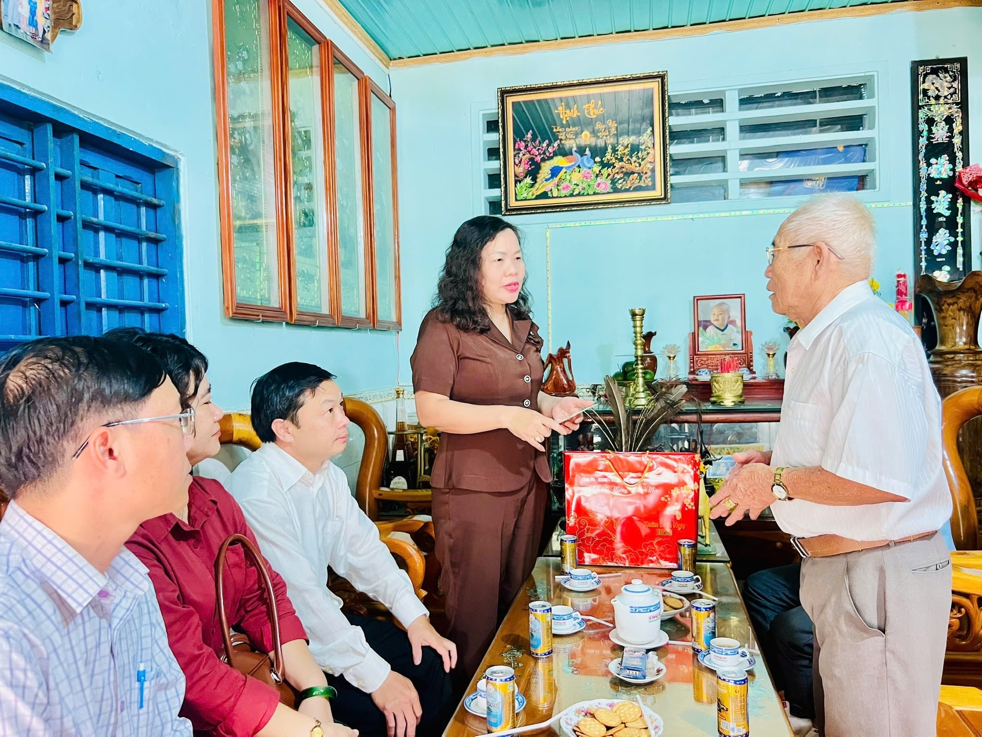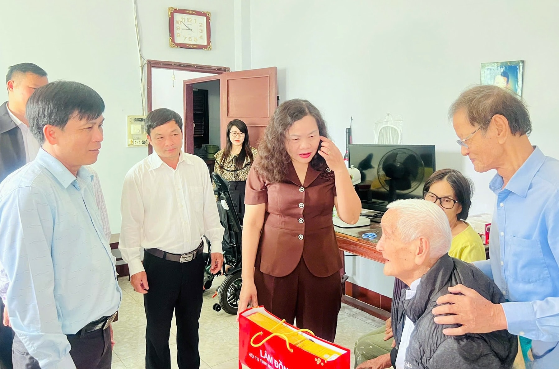 Sau chương trình trao quà, Đoàn công tác đã trực tiếp đến thăm, chúc Tết và trao quà cho 4 đồng chí thương binh có tỷ lệ thương tật trên 50% đang sinh sống trên địa bàn phường La Gi.