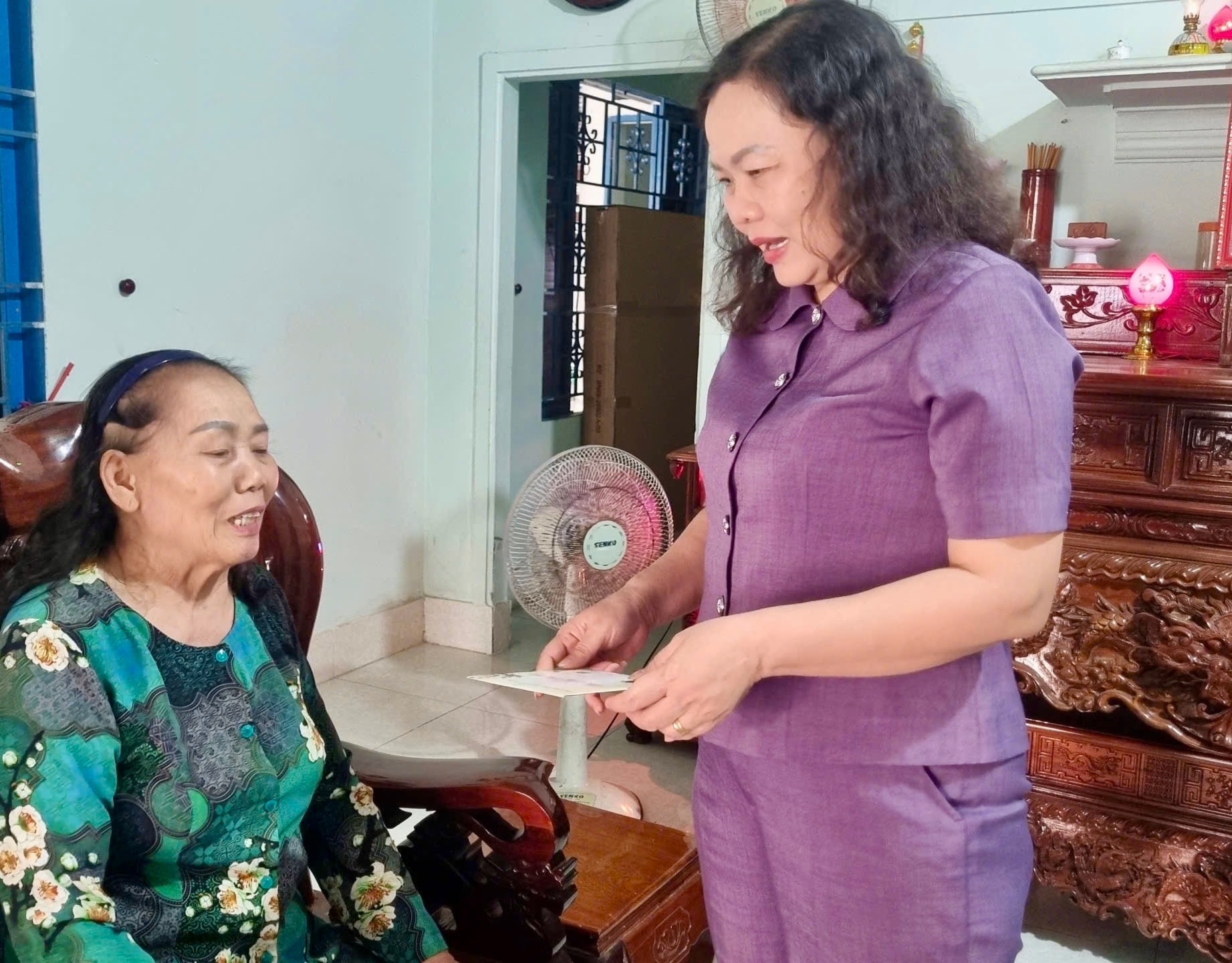 Đồng chí Nguyễn Thị Thuận Bích tặng quà người có công với cách mạng tại xã Hàm Tân