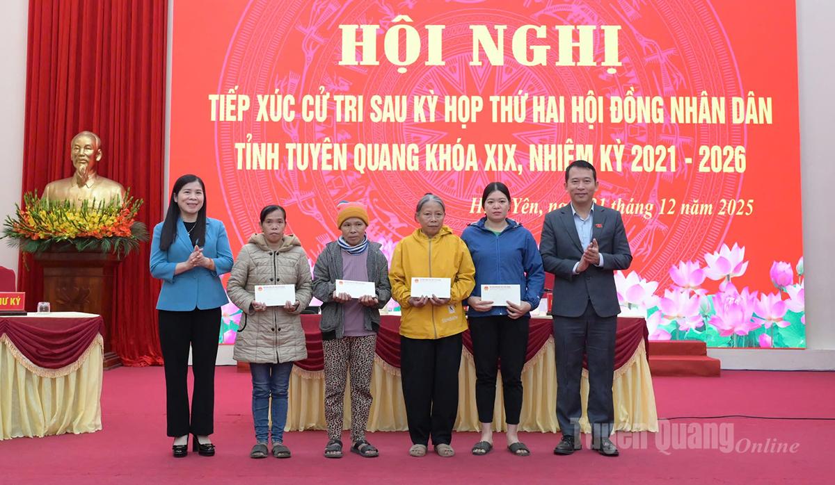 Tại hội nghị, cử tri xã Hàm Yên đã được nghe đại biểu HĐND tỉnh thông tin kết quả kỳ họp thứ 2, HĐND tỉnh vừa qua; thông tin về cuộc bầu cử đại biểu Quốc hội khóa XVI và đại biểu HĐND các cấp nhiệm kỳ 2026-2031. Trên tinh thần thẳng thắn, dân chủ, cởi mở, cử tri xã Hàm Yên đã nêu nhiều kiến nghị liên quan đến nhóm vấn đề như: Chậm cấp giấy chứng nhận quyền sử dụng đất tại khu di dân tái định cư thôn Đồng Ca; vướng mắc trong xử lý rác thải vệ sinh môi trường; đề nghị sớm nâng cấp một số tuyến đường đã bị hư hỏng; quy hoạch chợ dân sinh Tân Thành; hỗ trợ tiền cho người chăn nuôi do bị thiệt hại do dịch tả lợn châu Phi… Các kiến nghị thuộc thẩm quyền đã được lãnh đạo chính quyền địa phương tiếp thu, trả lời và làm rõ thêm các vấn đề mà cử tri quan tâm.
