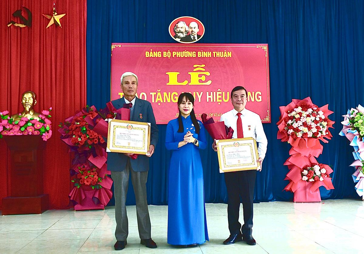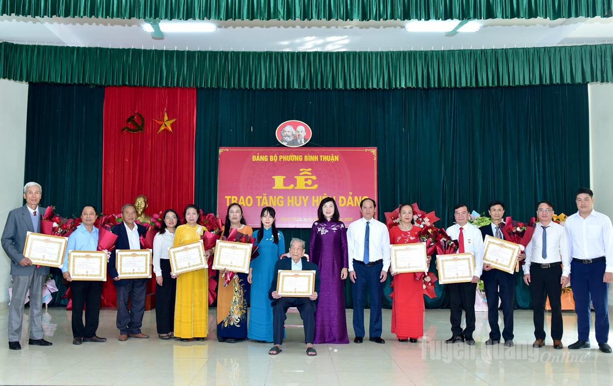 Nhân dịp này, Đảng bộ phường Bình Thuận đã tổ chức trao tặng Huy hiệu 60 năm tuổi Đảng cho 2 đồng chí, Huy hiệu 50 năm tuổi Đảng cho 1 đồng chí, Huy hiệu 45 năm tuổi Đảng cho 1 đồng chí, Huy hiệu 40 năm tuổi Đảng cho 5 đồng chí và Huy hiệu 30 năm tuổi Đảng cho 5 đồng chí.