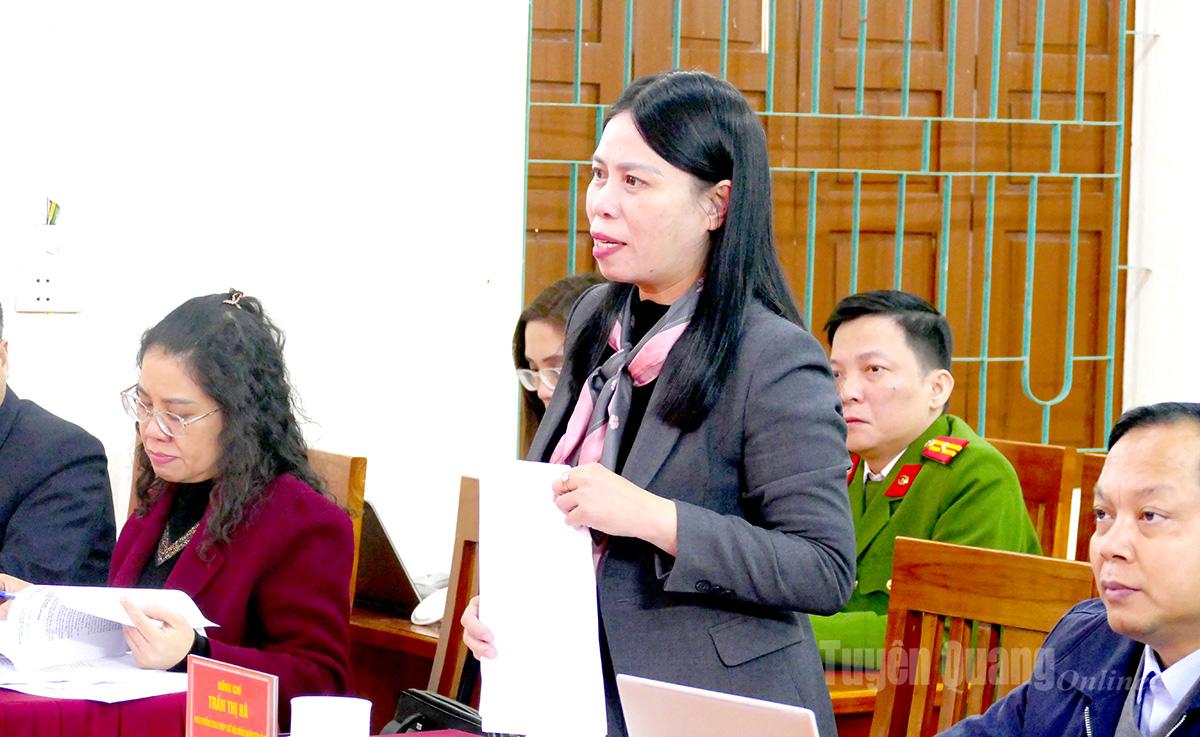 Đồng chí Trần Thị Hà, Phó Trưởng Ban Pháp chế HĐND tỉnh phát biểu tại buổi làm việc.