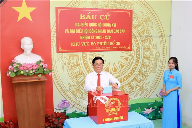 Cử tri phường Long Xuyên, tỉnh An Giang tham gia bỏ phiếu bầu cử từ sáng sớm ngày 15/3/2026.