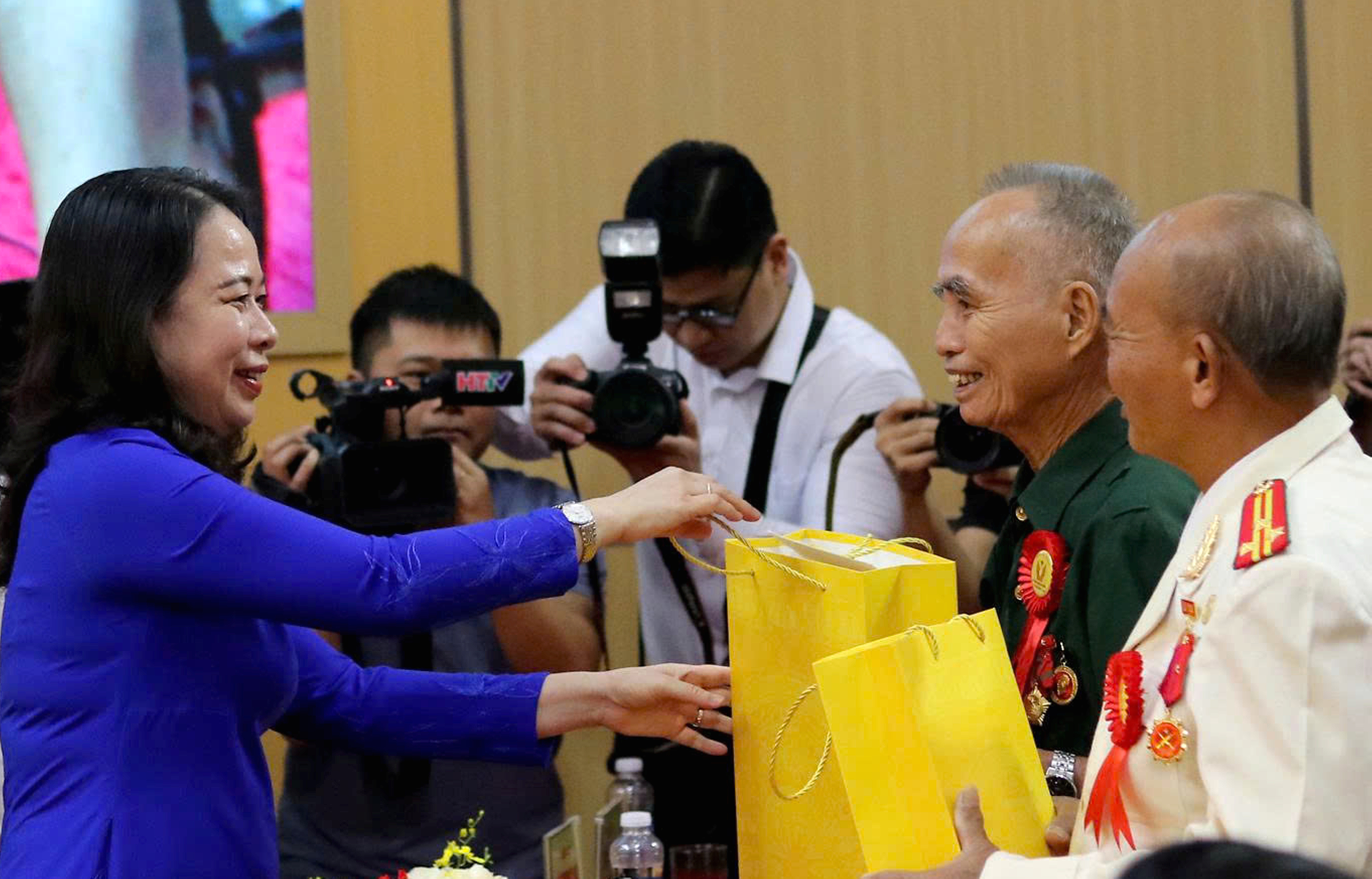 Phó Chủ tịch nước Võ Thị Ánh Xuân trao quà đến Anh hùng lực lượng vũ trang nhân dân