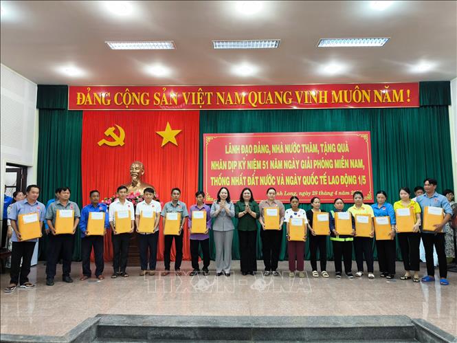 Trước đó, Phó Chủ tịch nước Võ Thị Ánh Xuân cùng Đoàn công tác đã đến thăm, tặng quà Mẹ Việt Nam Anh hùng Đặng Thị Biết (sinh năm 1929, xã Hữu Định), có chồng và con là liệt sỹ hy sinh trong các cuộc kháng chiến.