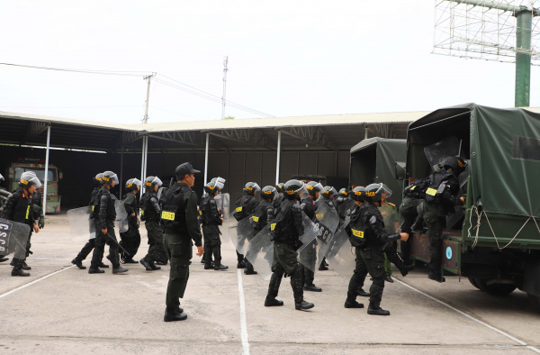 Phó Chủ tịch Quốc hội Trần Quang Phương kiểm tra công tác sẵn sàng chiến đấu của Cảnh sát cơ động.