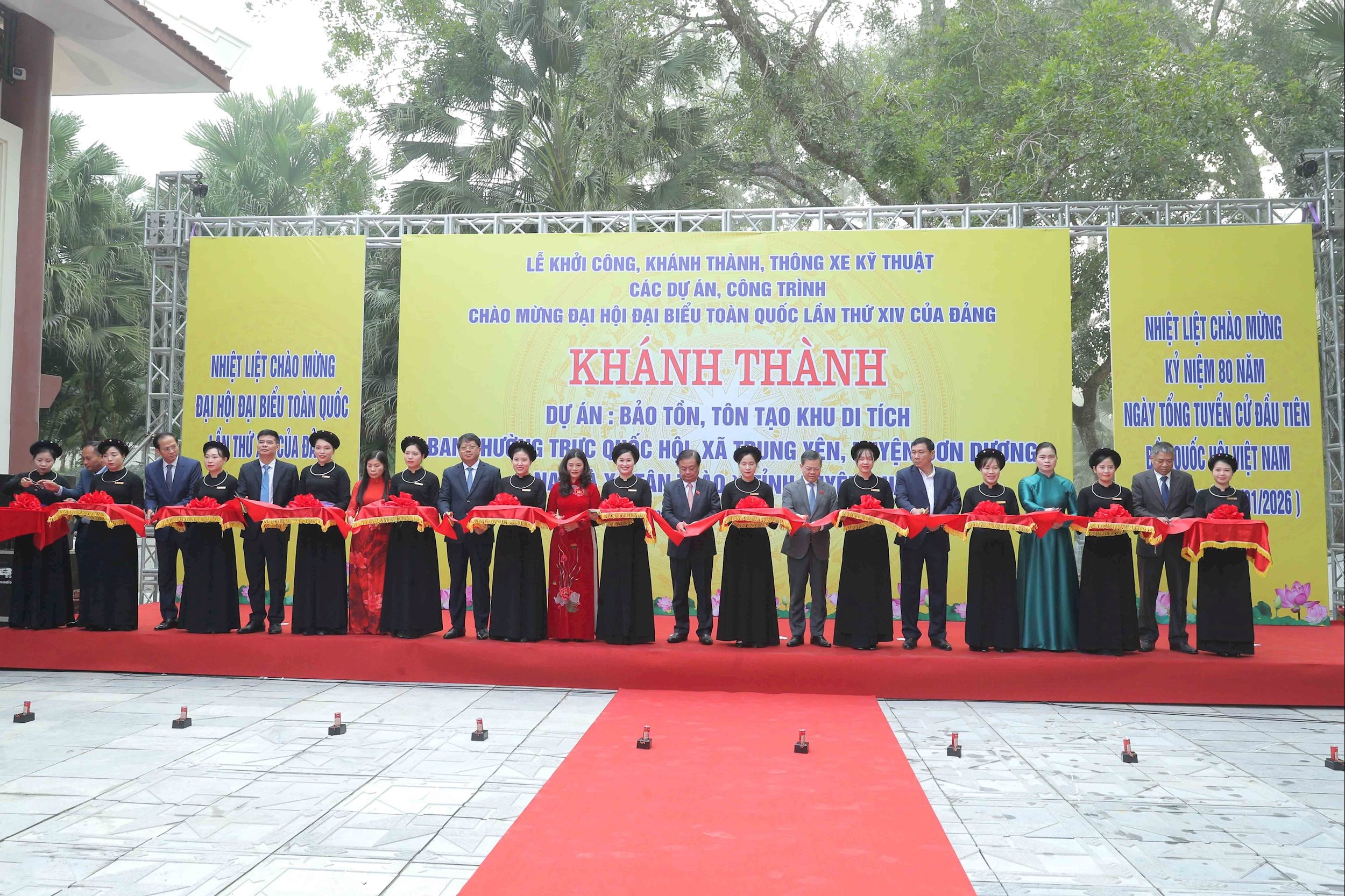 Tại buổi lễ, Phó Chủ tịch Quốc hội Lê Minh Hoan đã cùng đại diện lãnh đạo tỉnh Tuyên Quang cắt băng khánh thành công trình bảo tồn, tôn tạo Khu di tích Ban Thường trực Quốc hội.