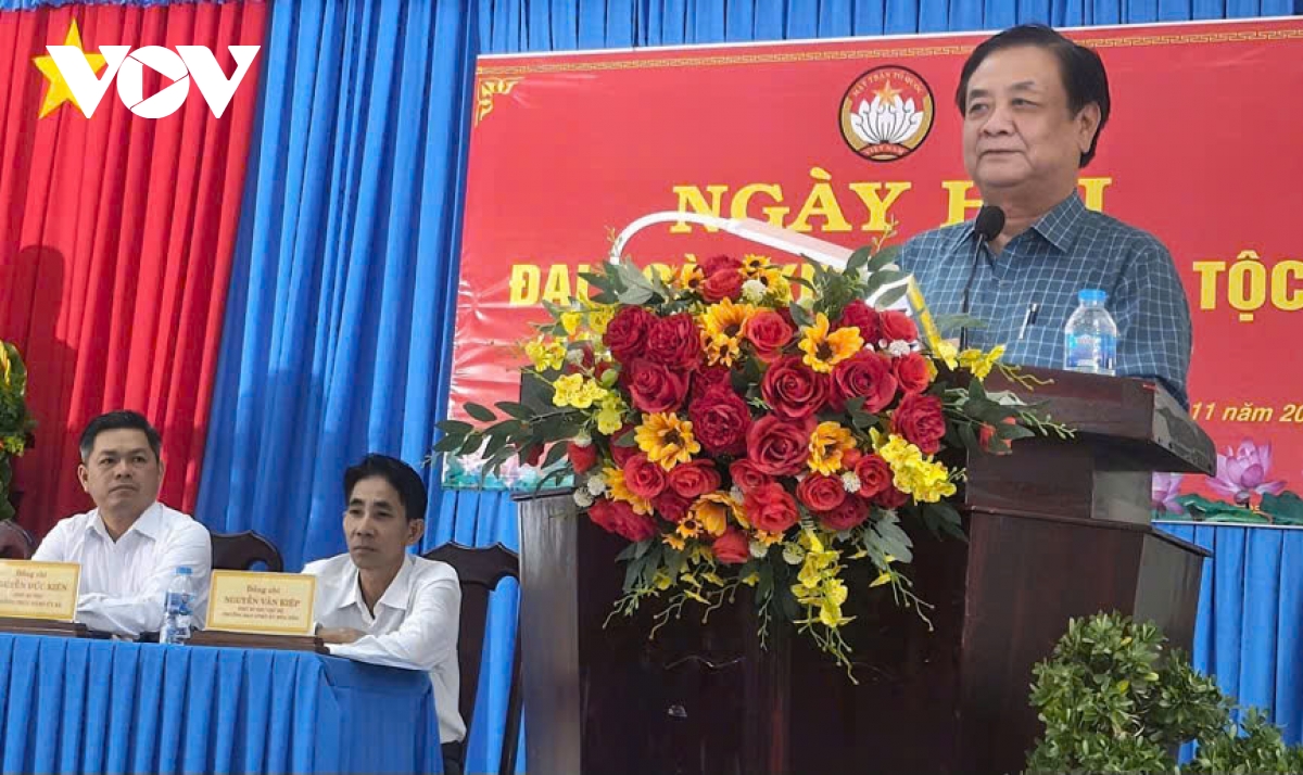 Ông Lê Minh Hoan Phó Chủ tịch Quốc hội phát biểu tại Ngày hội đoàn kết toàn dân tộc ấp Hòa Hảo
