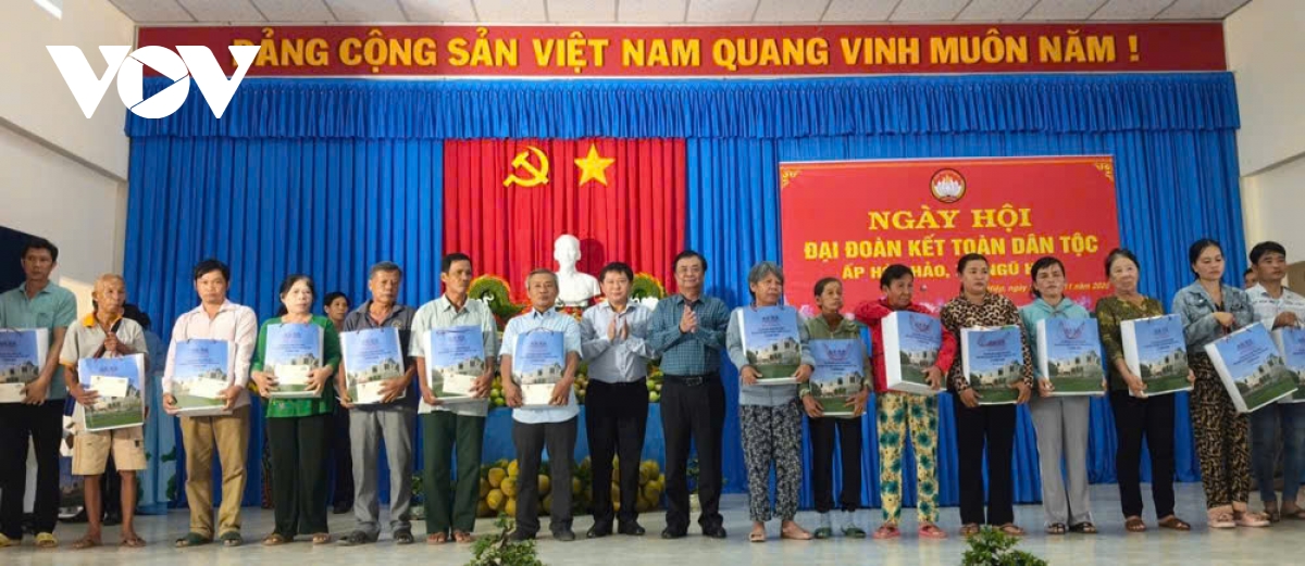 Dịp này, Phó Chủ tịch Quốc hội Lê Minh Hoan trao tặng 50 phần quà cho hộ nghèo, cận nghèo, hộ có hoàn cảnh khó khăn. Ủy ban Trung ương Mặt trận Tổ quốc Việt Nam tặng 10 suất quà cho hộ gia đình chính sách, Tỉnh ủy Đồng Tháp tặng quà cho Ban Công tác Mặt trận ấp Hòa Hảo.
