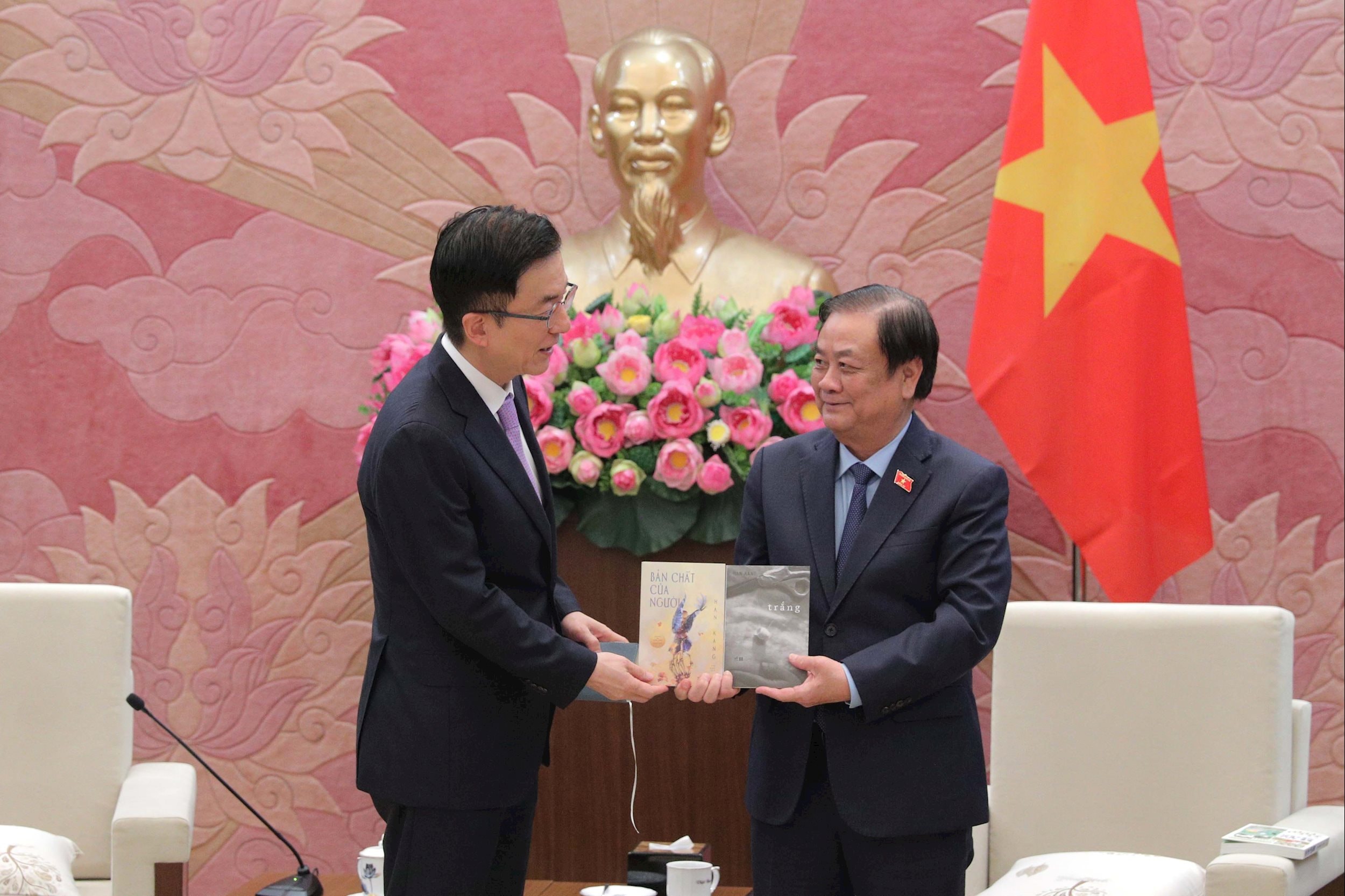 Phó Chủ tịch Quốc hội Lê Minh Hoan tặng sách cho Phó Tổng Giám đốc phụ trách Tài chính (CFO), Samsung Điện tử Park Soon Cheol