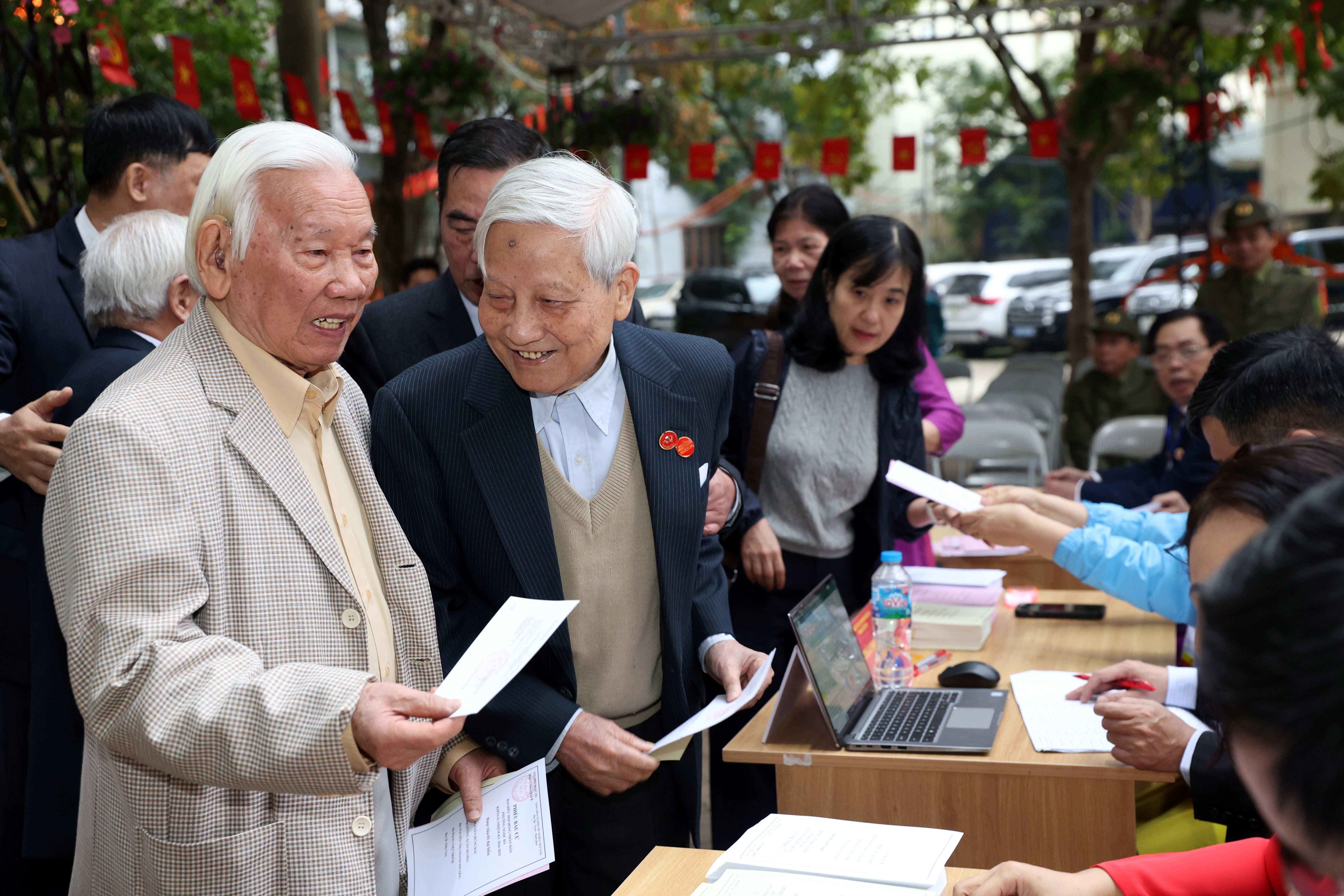 Những cử tri cao tuổi phấn khởi nhận phiếu bầu cử tại Khu vực bỏ phiếu số 21, phường Ngọc Hà, Hà Nội