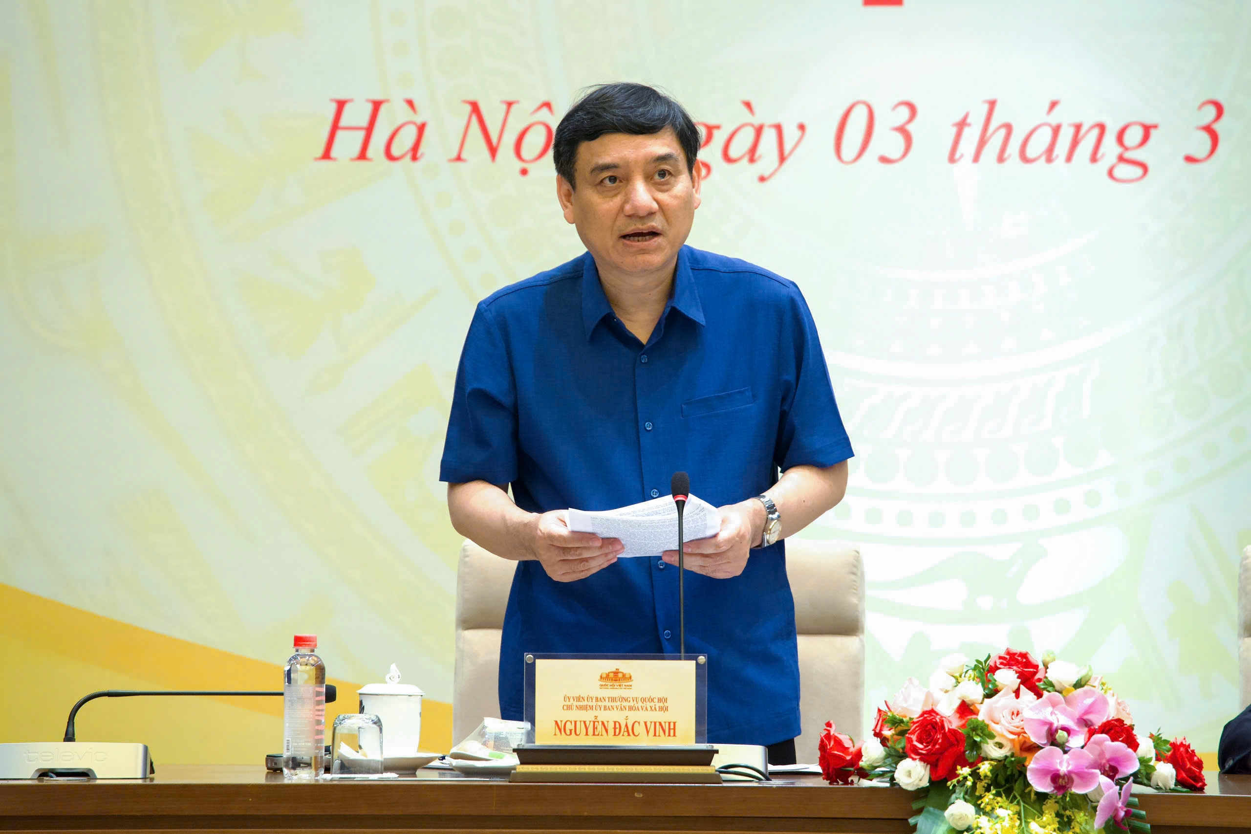 Chủ nhiệm Ủy ban Văn hóa và Xã hội Nguyễn Đắc Vinh - Phó Trưởng Tiểu ban Thông tin tuyên truyền, phát biểu