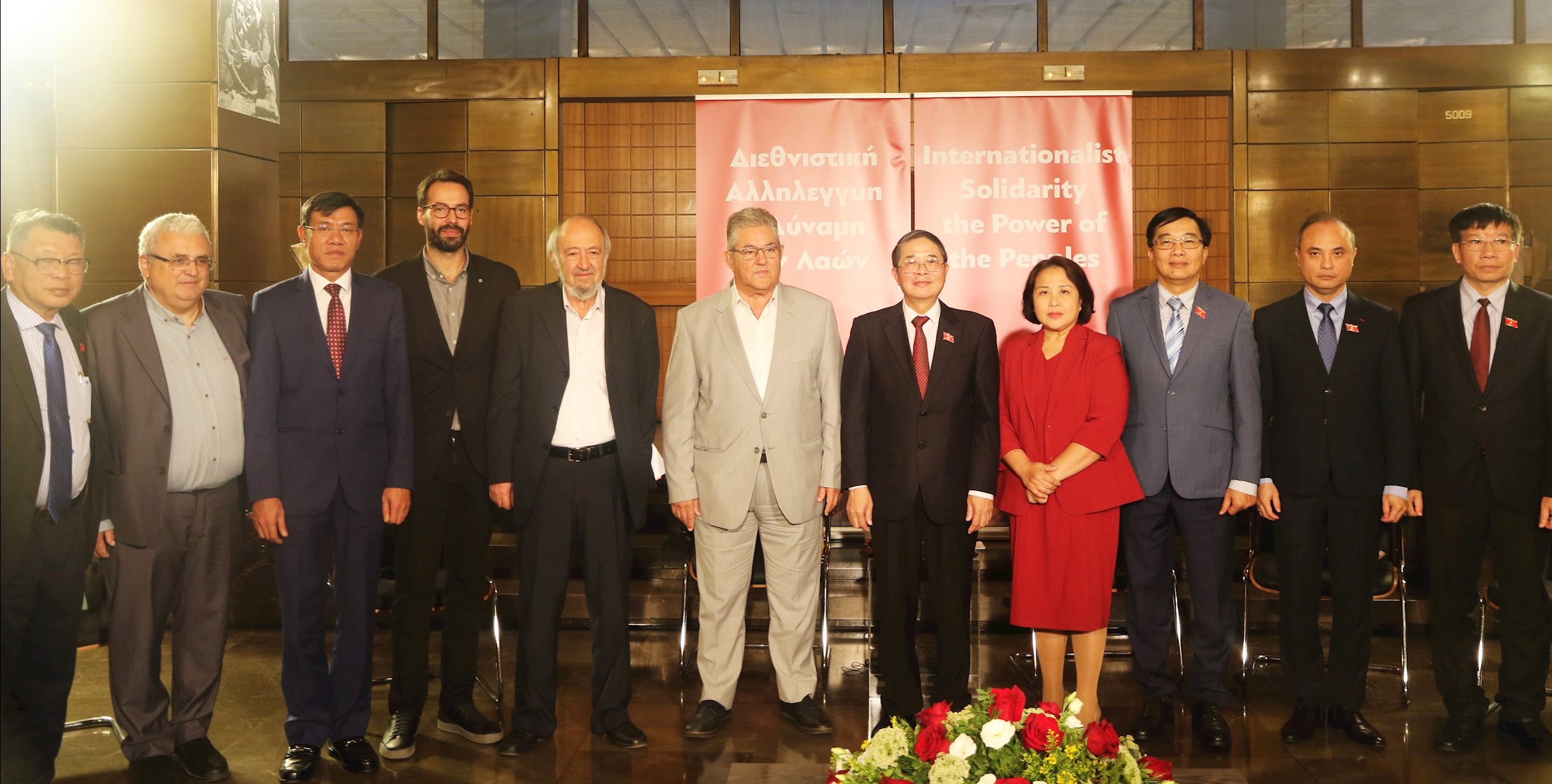 Tổng Bí thư Đảng Cộng sản Hy Lạp Dmitris Koutsoumpas nhiệt liệt chào mừng Phó Chủ tịch Quốc hội Nguyễn Đức Hải và Đoàn đại biểu cấp cao Quốc hội Việt Nam; bày tỏ chia sẻ về những mất mát và thiệt hại của Việt Nam do cơn bão Bualoi gây ra vừa qua.