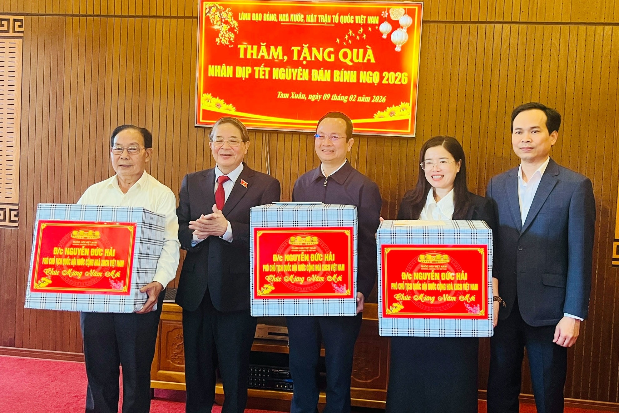 Nhân dịp này, Phó Chủ tịch Quốc hội Nguyễn Đức Hải thăm hỏi, chúc Tết và trao quà tặng Ban Quản lý Khu lưu niệm, chính quyền xã Tam Xuân, thôn Khương Mỹ; tặng quà các gia đình chính sách, người có công với cách mạng và 30 hộ gia đình có hoàn cảnh khó khăn trên địa bàn xã, thể hiện sự quan tâm sâu sắc của Đảng, Nhà nước đối với các đối tượng chính sách và Nhân dân địa phương.