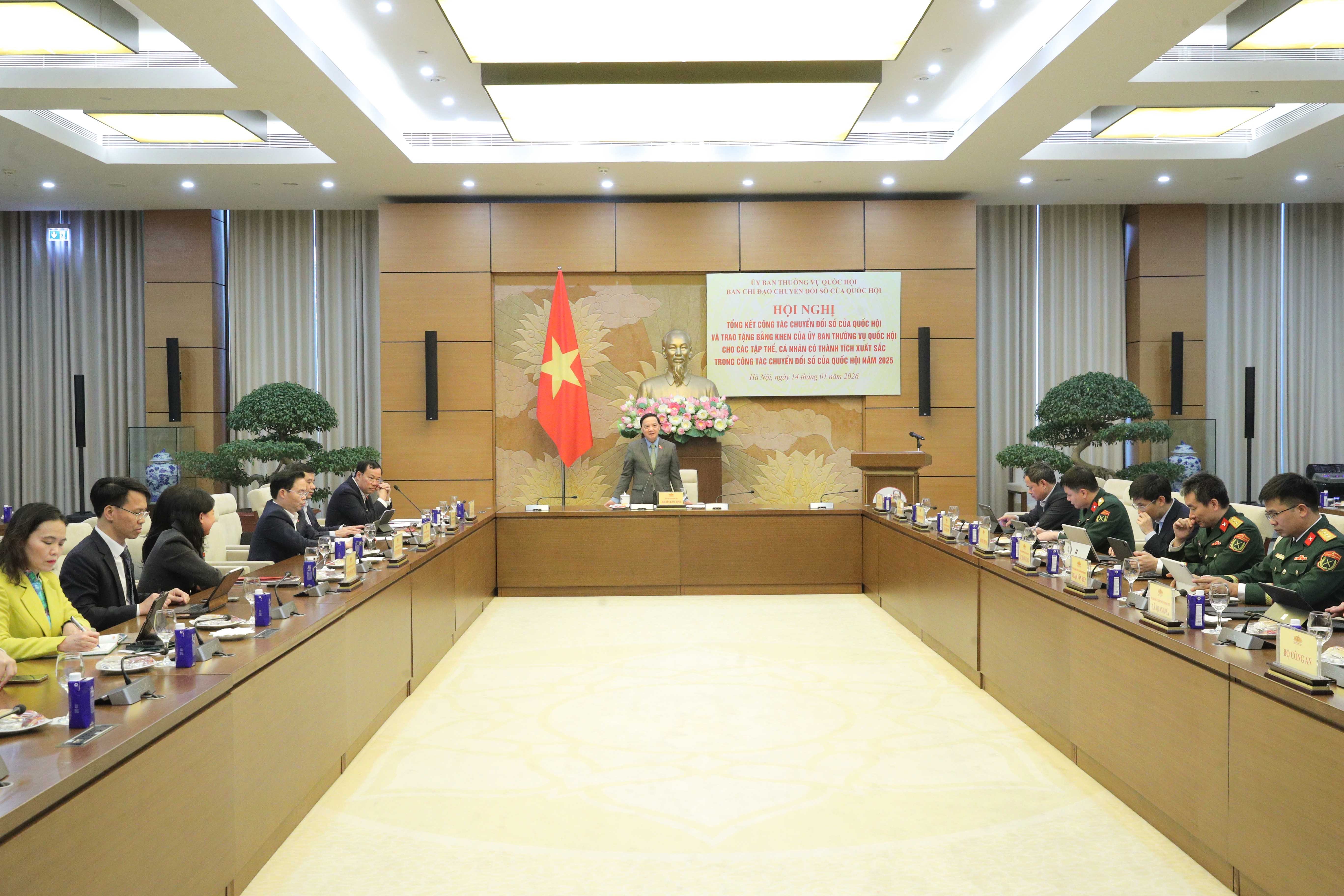 Bên cạnh đó, nghiên cứu, ứng dụng trí tuệ nhân tạo và triển khai các phần mềm, ứng dụng công nghệ thông tin như: hệ thống phần mềm quản lý văn bản và điều hành điện tử; hệ thống phần mềm ứng dụng cung cấp thông tin trên các thiết bị di động thông minh (App Quốc hội 2.0); hệ thống phần mềm gỡ băng ghi âm; phần mềm nền tảng “Bình dân học vụ số - Quốc hội số”; phần mềm quản lý ý kiến cử tri và khiếu nại, tố cáo; phần mềm quản lý hoạt động giám sát; hệ thống phần mềm phục vụ bầu cử ĐBQH khóa XVI và đại biểu HĐND các cấp nhiệm kỳ 2026-2031; phần mềm quản lý hồ sơ cán bộ, công chức, viên chức; phòng họp không giấy tờ (Q-Cabinet)...