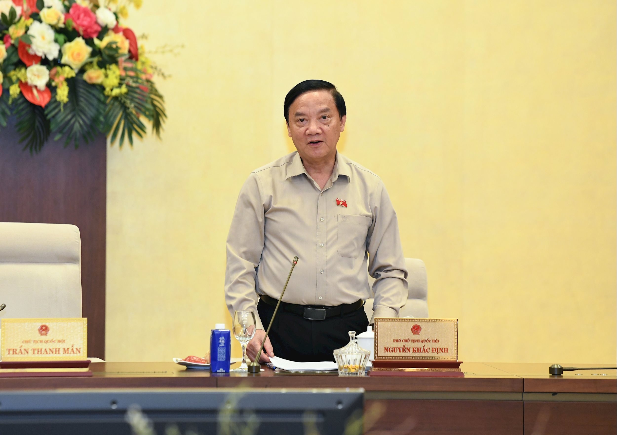 Phó Bí thư Đảng ủy Quốc hội, Phó Chủ tịch Quốc hội Nguyễn Khắc Định phát biểu tại cuộc họp