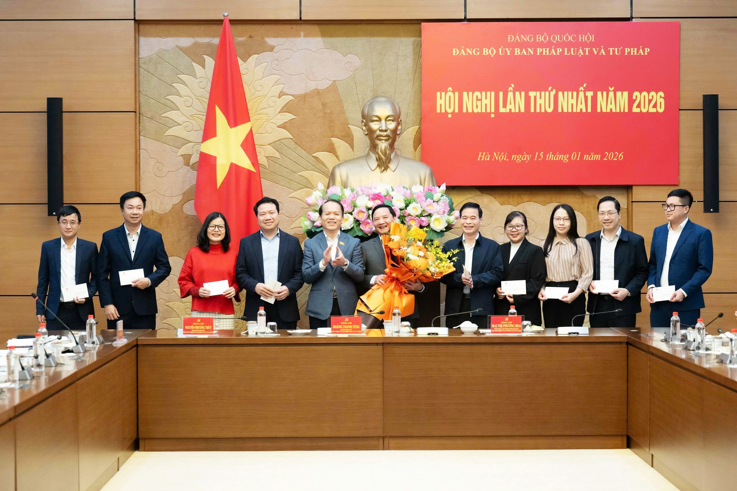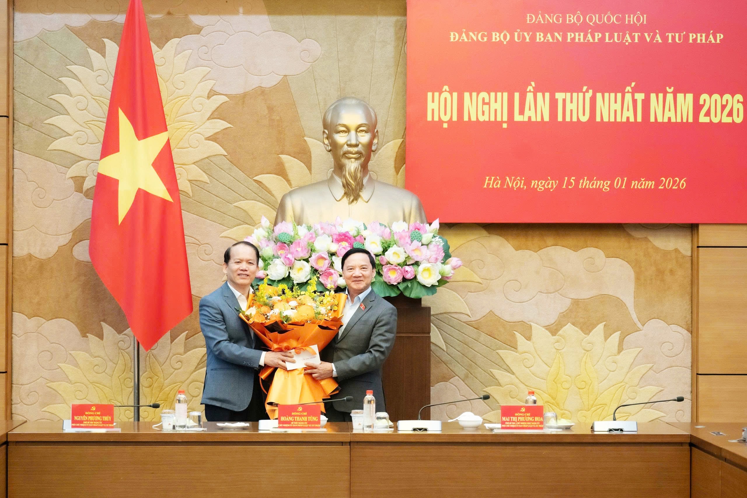 Phát biểu kết luận hội nghị, Chủ nhiệm Ủy ban Pháp luật và Tư pháp Hoàng Thanh Tùng nhấn mạnh, 2026 là năm triển khai thực hiện Nghị quyết Đại hội XIV của Đảng, cũng là năm đầu tiên của nhiệm kỳ Quốc hội khóa XVI với rất nhiều công việc cần được khẩn trương triển khai thực hiện. Do đó, về công tác xây dựng Đảng, Đảng ủy Ủy ban kịp thời tổ chức nghiên cứu, quán triệt, triển khai, xây dựng Chương trình hành động thực hiện Nghị quyết Đại hội XIV; lãnh đạo, chỉ đạo triển khai thực hiện các nghị quyết, chỉ thị, kết luận của Ban Chấp hành Trung ương, Bộ Chính trị, Ban Bí thư gắn với thực tiễn tổ chức và hoạt động của Quốc hội và việc tiếp tục triển khai thực hiện Chương trình hành động thực hiện Nghị quyết Đại hội đại biểu Đảng bộ Quốc hội, Nghị quyết Đại hội đại biểu Đảng bộ Ủy ban lần thứ I, nhiệm kỳ 2025 - 2030.
