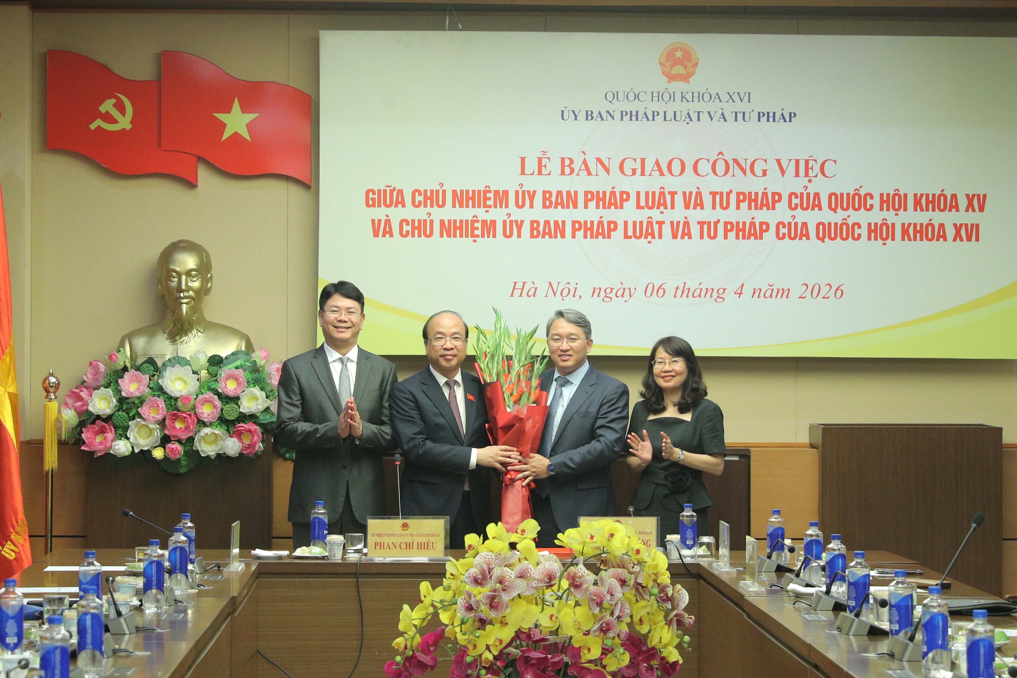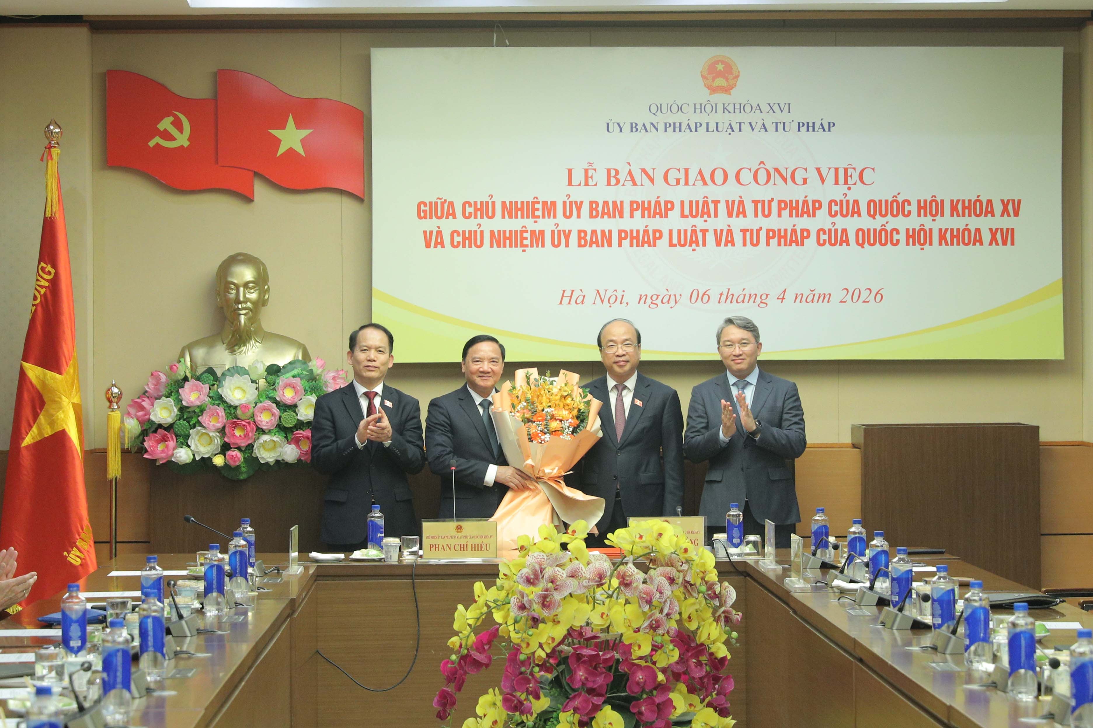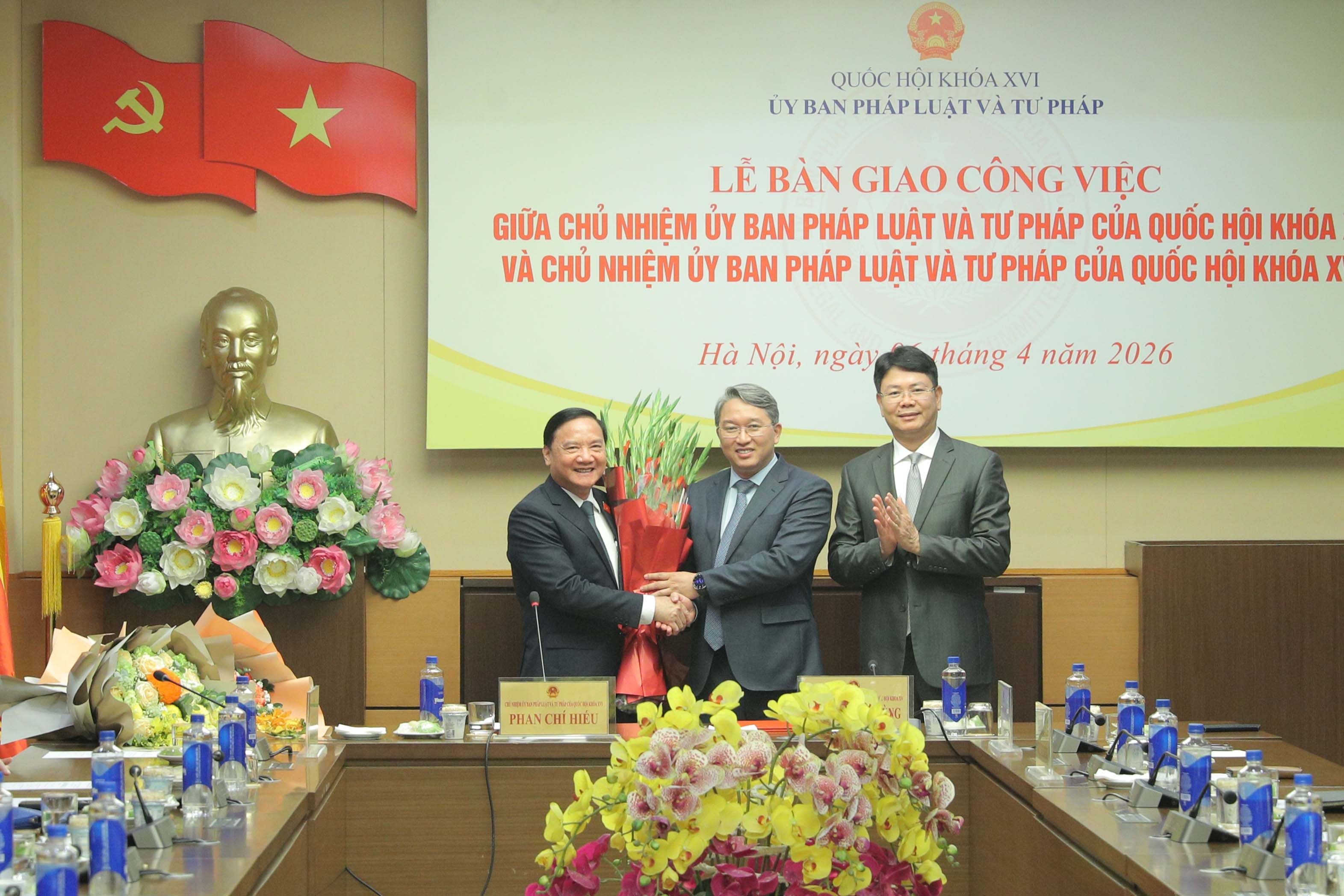 Tại buổi lễ, Phó Chủ tịch Quốc hội Nguyễn Khắc Định đã chứng kiến Chủ nhiệm Ủy ban Pháp luật và Tư pháp khóa XVI Phan Chí Hiếu và Chủ nhiệm Ủy ban Pháp luật và Tư pháp khóa XV Hoàng Thanh Tùng ký biên bản bàn giao công việc.