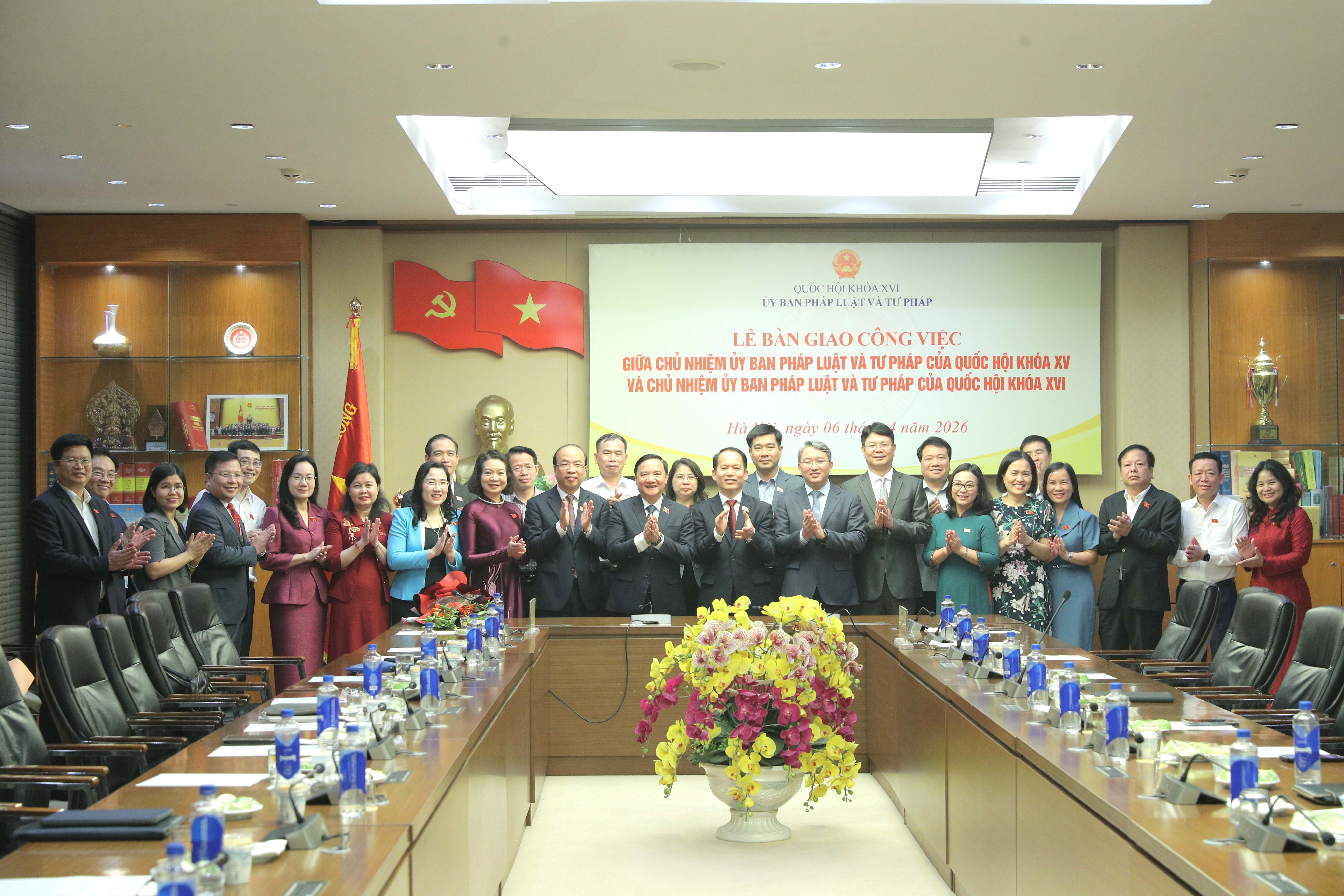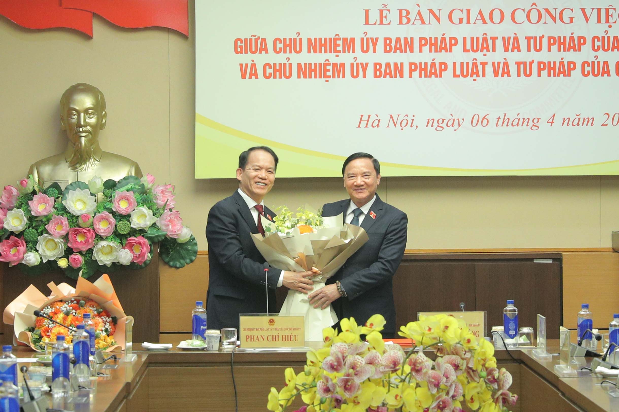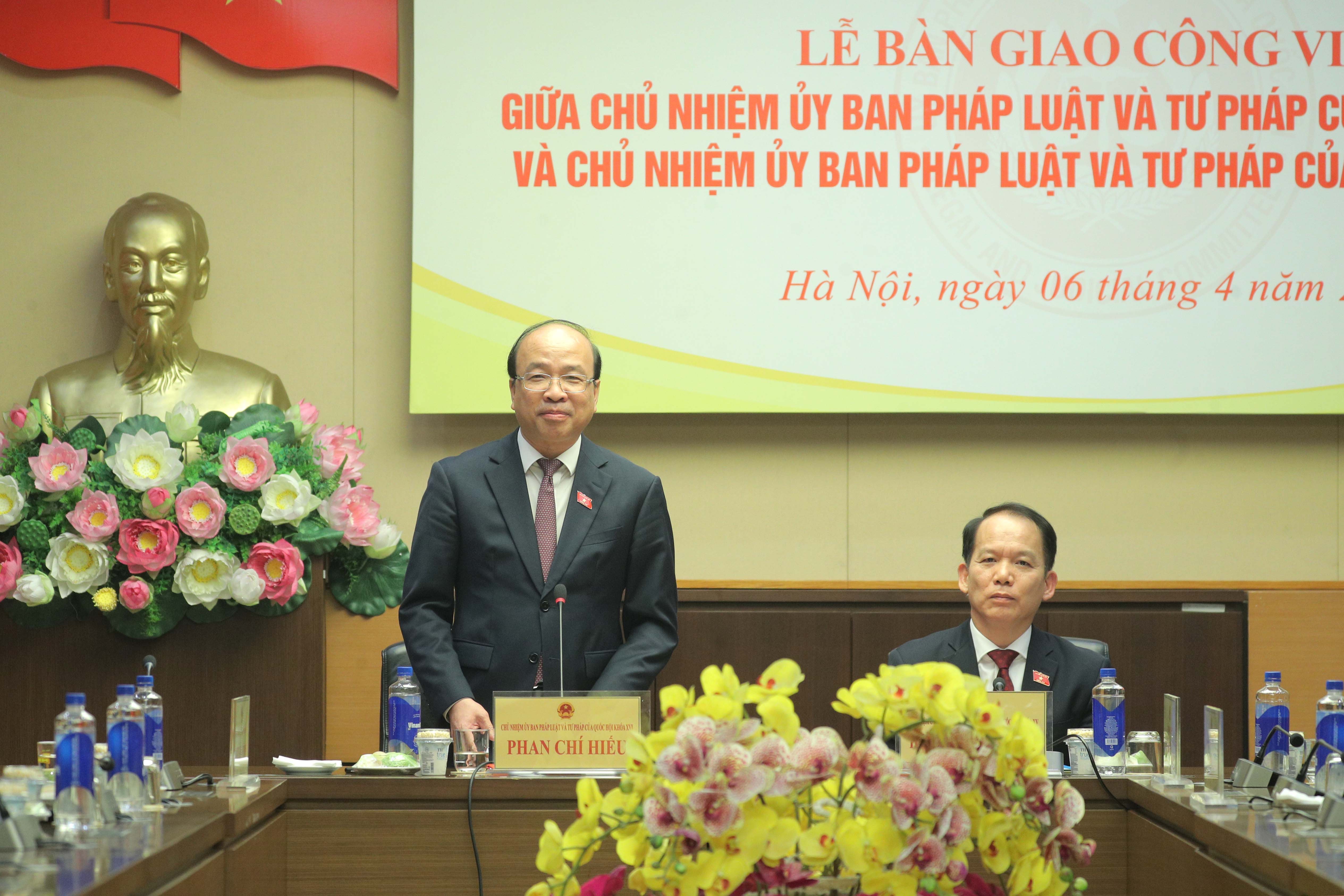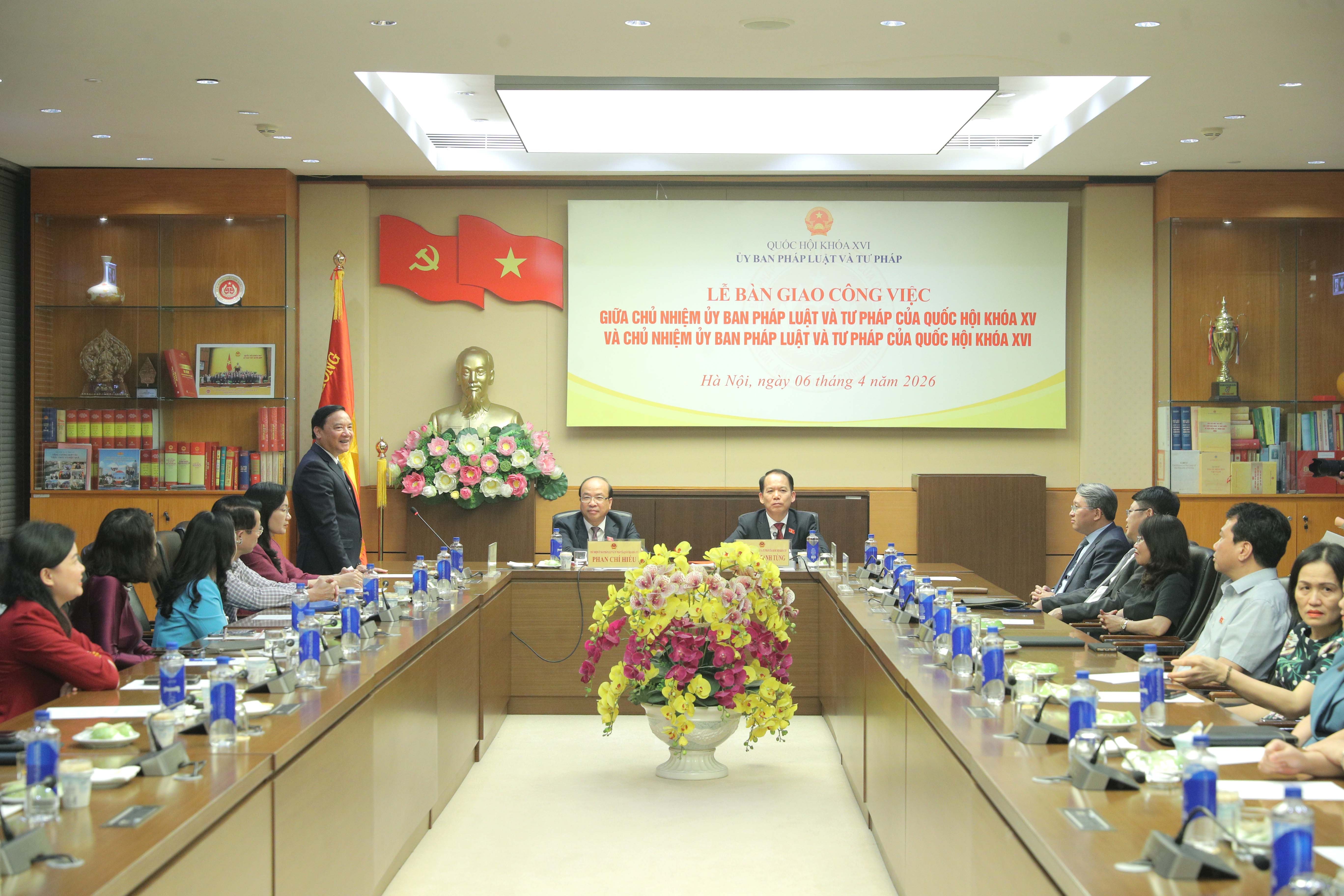 Tại buổi lễ, Phó Chủ tịch Quốc hội Nguyễn Khắc Định đã chứng kiến Chủ nhiệm Ủy ban Pháp luật và Tư pháp khóa XVI Phan Chí Hiếu và Chủ nhiệm Ủy ban Pháp luật và Tư pháp khóa XV Hoàng Thanh Tùng ký biên bản bàn giao công việc.