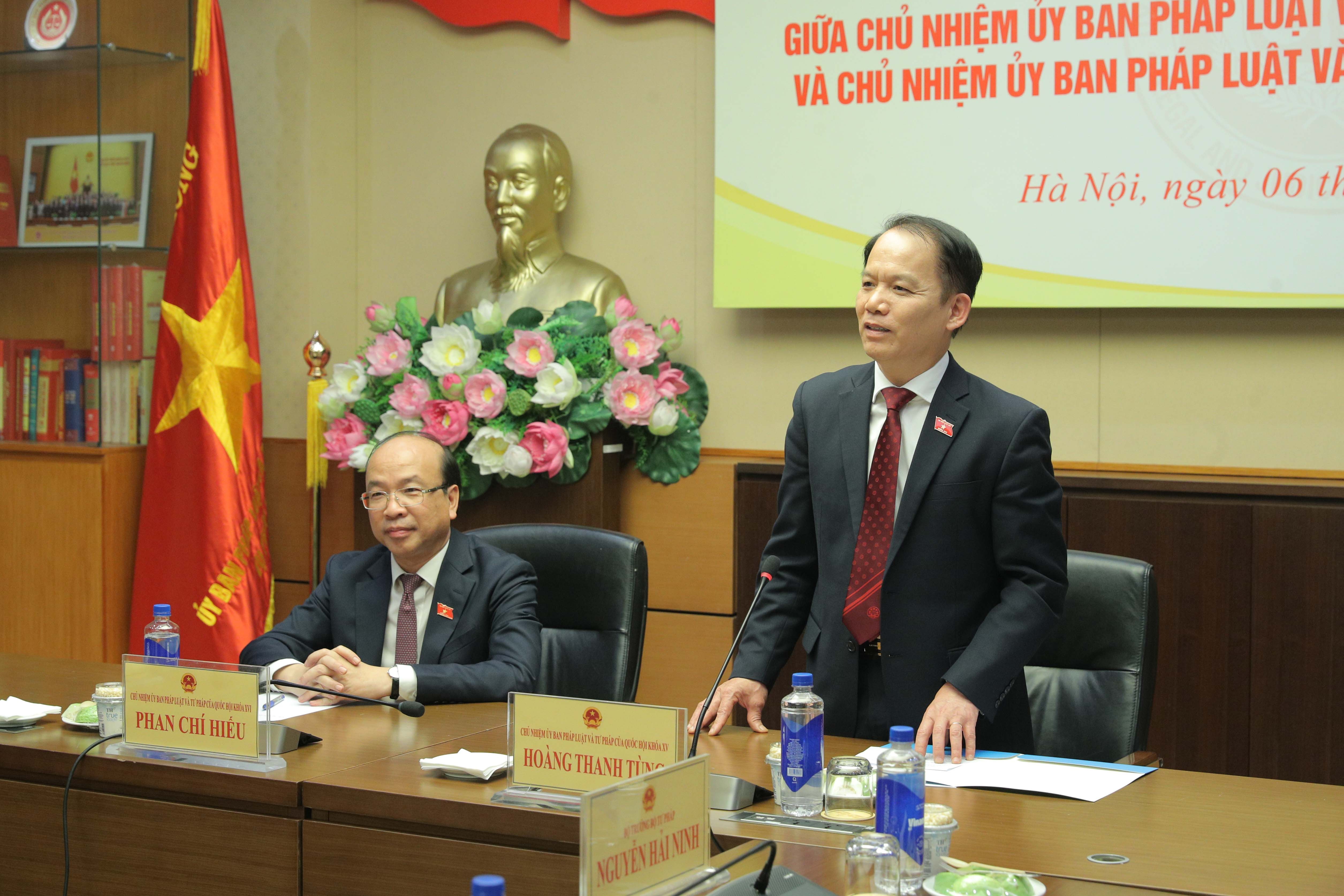 Đồng thời, tin tưởng, trong nhiệm kỳ Quốc hội khóa XVI, mối quan hệ phối hợp giữa Ủy ban Pháp luật và Tư pháp và Bộ Tư pháp ngày càng chặt chẽ hơn, hiệu quả hơn, cùng nhau hoàn thành nhiệm vụ Đảng, Nhà nước và Nhân dân giao phó; hoàn thiện, đồng bộ thể chế, pháp luật, phục vụ yêu cầu phát triển đất nước trong kỷ nguyên mới.