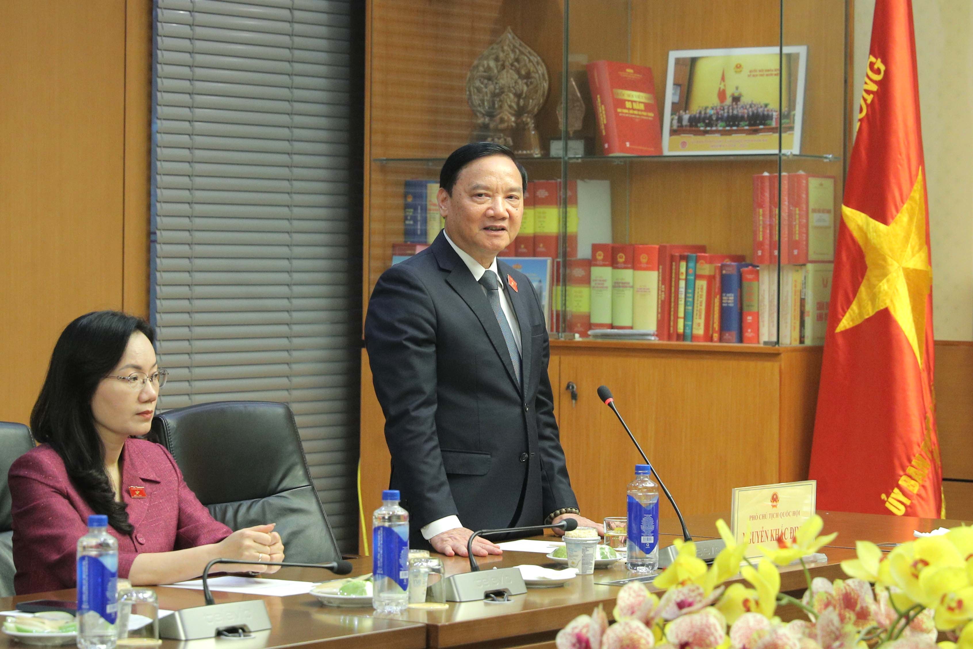 Phó Chủ tịch Quốc hội Nguyễn Khắc Định phát biểu tại buổi lễ. Ảnh: Hồ Long