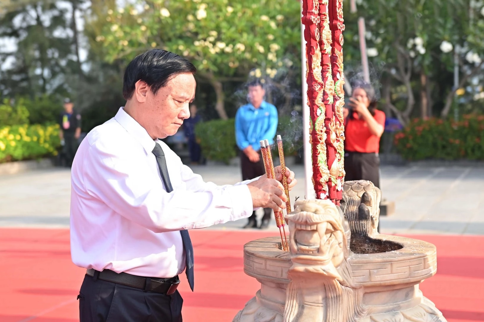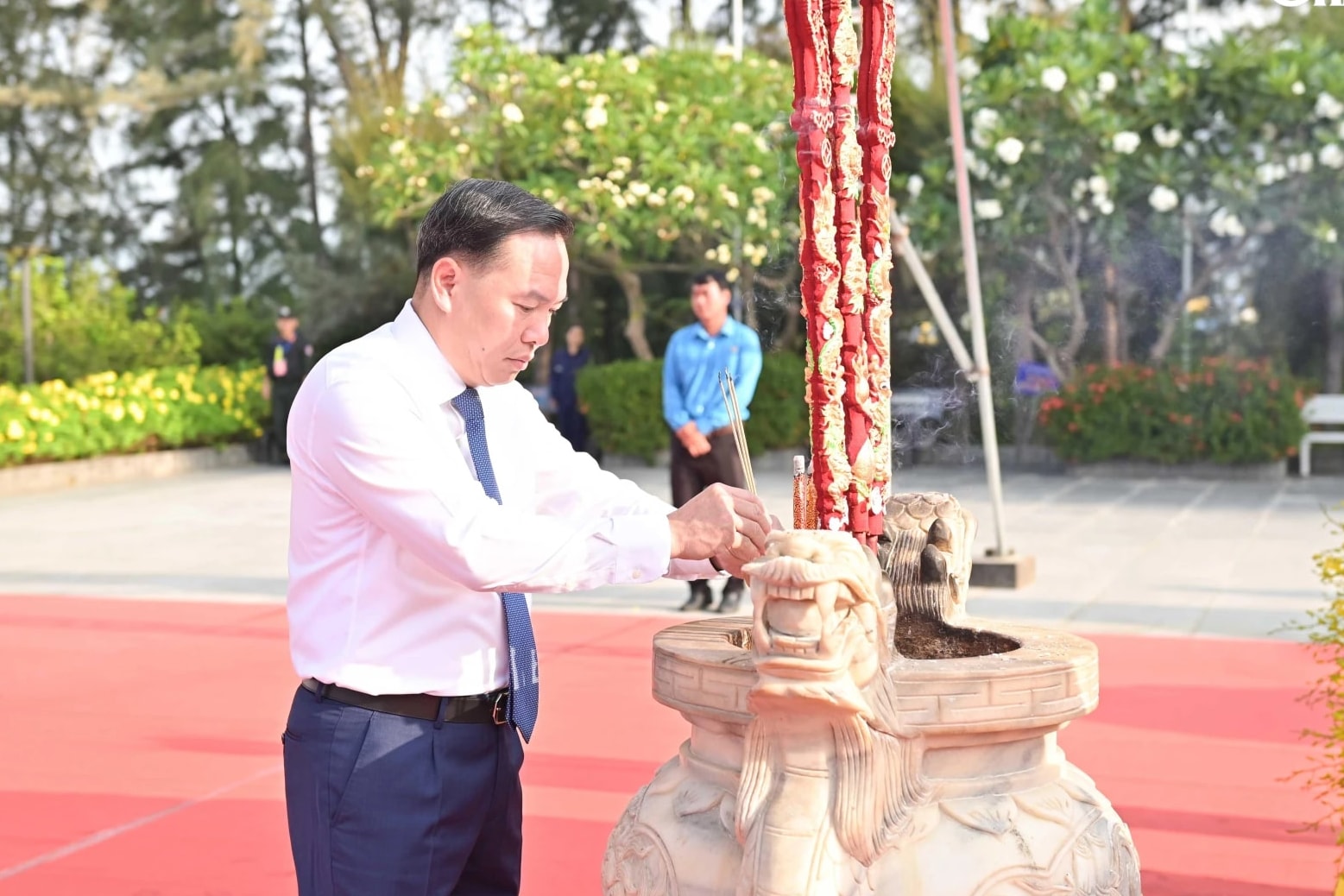 Trong không khí trang nghiêm, thành kính, Phó Chủ tịch Quốc hội Nguyễn Khắc Định và các đại biểu đã dâng hương, dâng hoa, dành phút mặc niệm tưởng nhớ 64 chiến sĩ Hải quân nhân dân Việt Nam đã anh dũng hy sinh trong sự kiện Gạc Ma năm 1988.