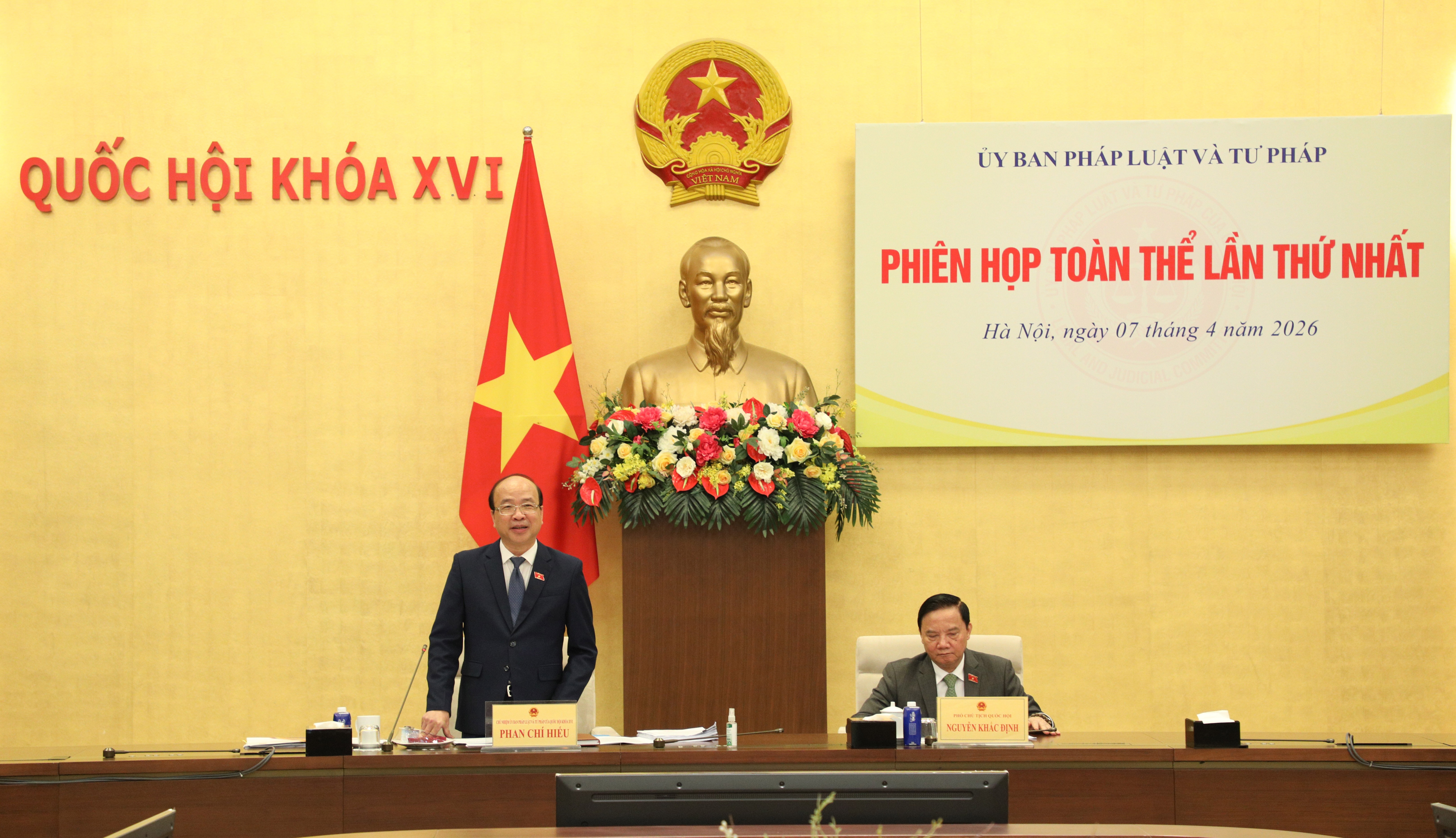 Chủ nhiệm Ủy ban Phan Chí Hiếu nêu rõ, chức năng, nhiệm vụ, quyền hạn chính của Ủy ban Pháp luật và Tư pháp là thẩm tra, giám sát, kiến nghị đối với các dự án luật, pháp lệnh, nghị quyết thuộc lĩnh vực tổ chức bộ máy nhà nước, hành chính, dân sự, hình sự, tố tụng tư pháp, thi hành án, thi hành các biện pháp ngăn chặn, bổ trợ tư pháp, phòng, chống tham nhũng, tiêu cực, tương trợ tư pháp, dẫn độ, chuyển giao người đang chấp hành án phạt tù; bảo đảm tính hợp hiến, hợp pháp và tính thống nhất của hệ thống pháp luật trong các dự án luật, pháp lệnh, nghị quyết trước khi trình Quốc hội, Ủy ban Thường vụ Quốc hội xem xét, quyết định.