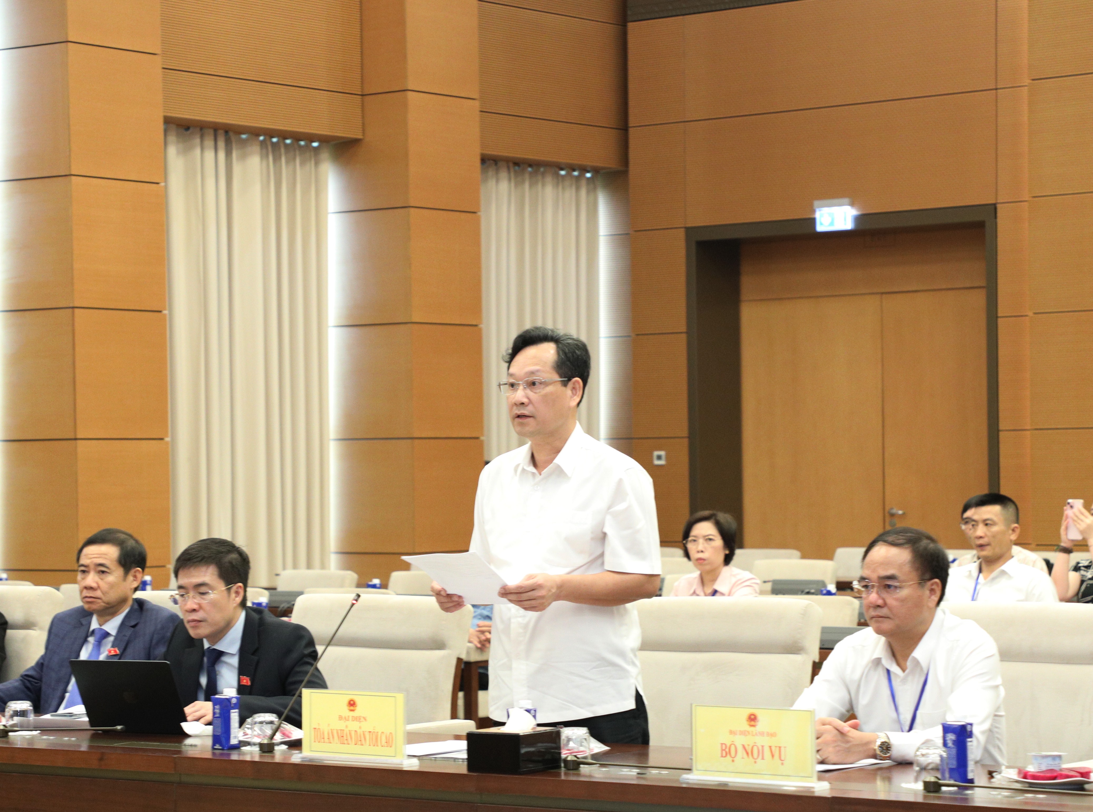 Phó Chánh án Tòa án nhân dân tối cao Nguyễn Văn Tiến trình bày tờ trình tại phiên họp