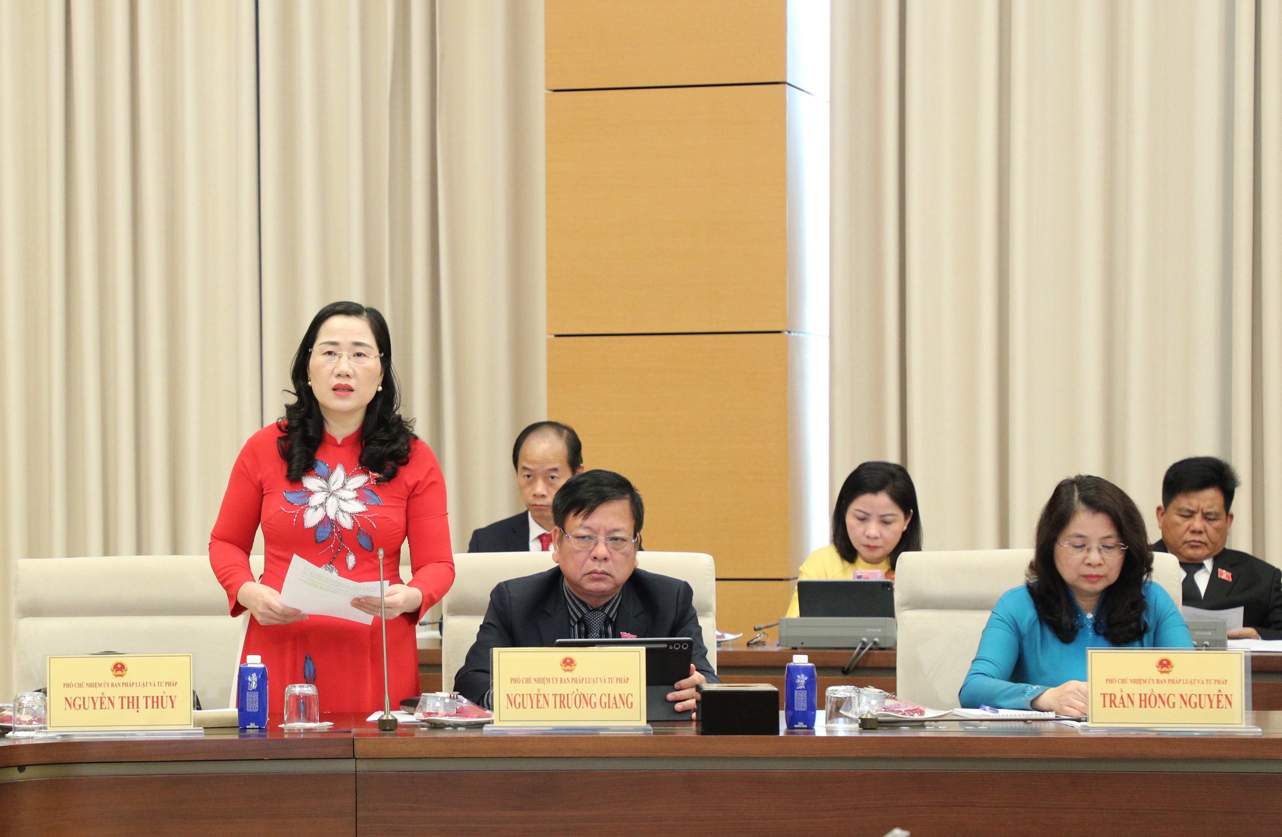 Phó Chủ nhiệm Ủy ban Pháp luật và Tư pháp Nguyễn Thị Thủy phát biểu tại phiên họp