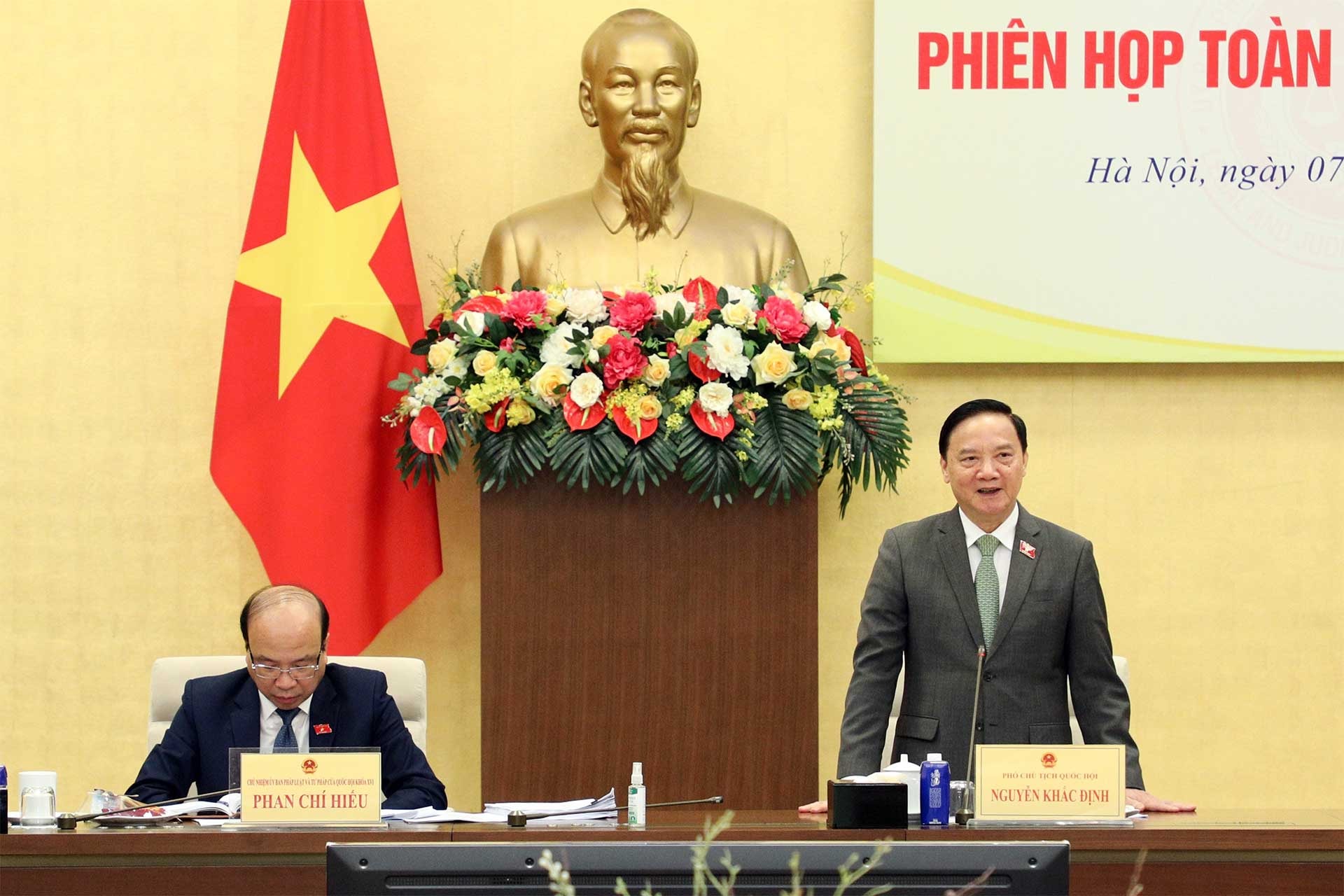 Phát biểu chỉ đạo tại Phiên họp, Phó Chủ tịch Quốc hội Nguyễn Khắc Định chúc mừng các thành viên Ủy ban Pháp luật và Tư pháp nhiệm kỳ khóa XVI đã được Quốc hội, Ủy ban Thường vụ Quốc hội tín nhiệm, phê chuẩn, bổ nhiệm các chức danh trong Ủy ban Pháp luật và Tư pháp với số phiếu tán thành 100%.