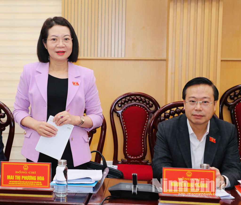 Đồng chí Mai Thị Phương Hoa, Phó Chủ nhiệm Ủy ban Pháp luật và Tư pháp của Quốc hội, Phó Chánh Văn phòng Hội đồng Bầu cử Quốc gia phát biểu tại buổi làm việc.