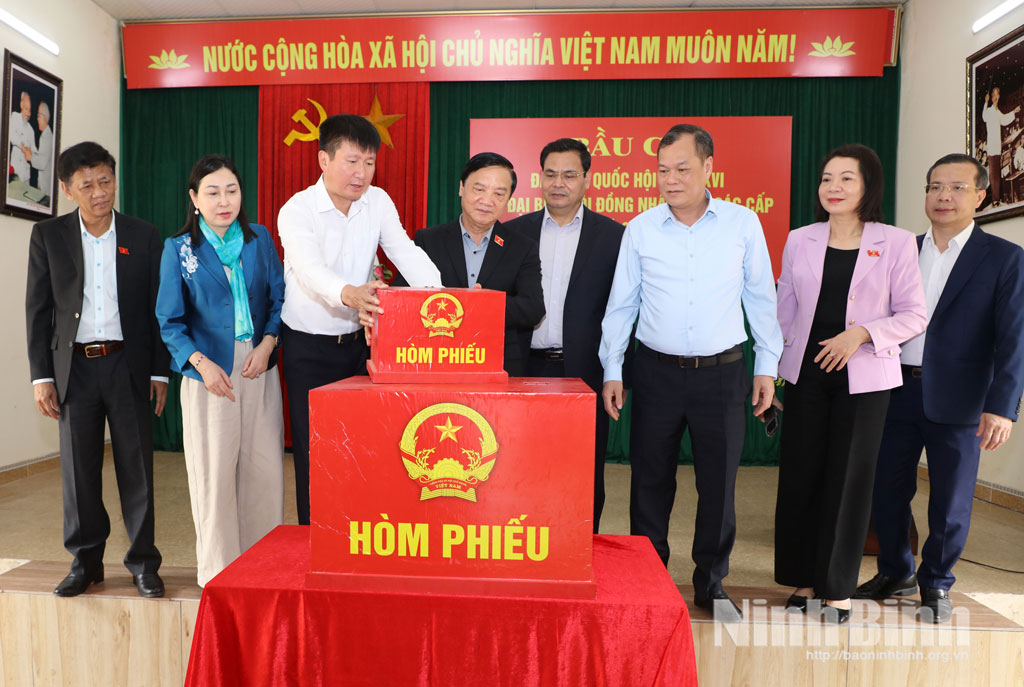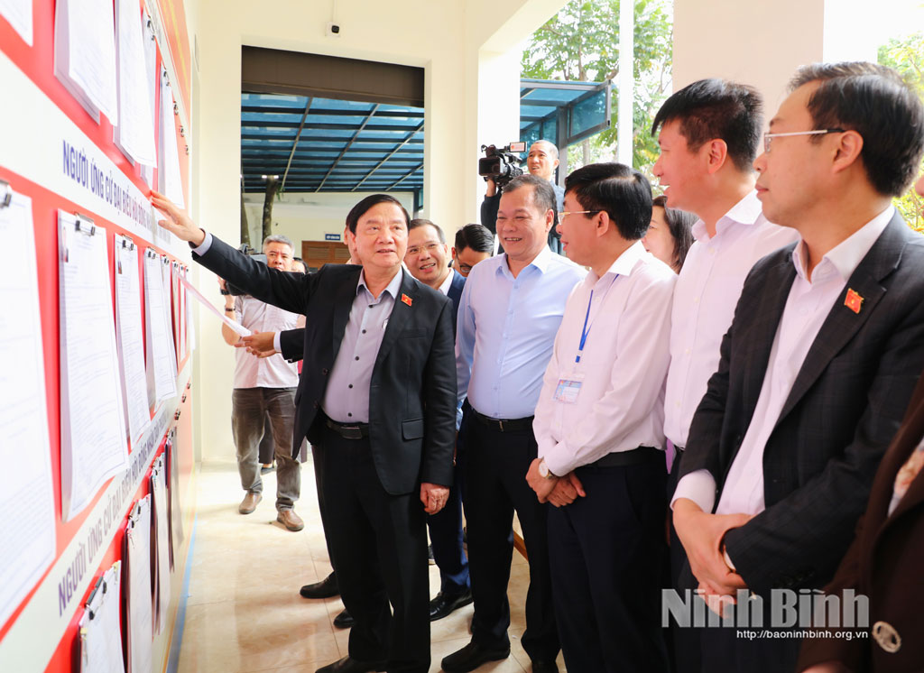 * Sau khi làm việc với Ban Chỉ đạo cuộc bầu cử tỉnh và Ủy ban Bầu cử tỉnh, Ðoàn giám sát, kiểm tra của Ủy ban Thường vụ Quốc hội và Hội đồng Bầu cử quốc gia đã đi kiểm tra thực tế tại khu vực bỏ phiếu số 2, đơn vị bầu cử số 1, phường Nam Hoa Lư và khu vực bỏ phiếu số 6, đơn vị bầu cử số 1, phường Hoa Lư. Qua kiểm tra, Đoàn đánh giá cao sự chuẩn bị nghiêm túc, chu đáo của địa phương về cơ sở vật chất, niêm yết danh sách cử tri, hồ sơ, tài liệu bầu cử và công tác bảo đảm an ninh, trật tự; đồng thời đề nghị tiếp tục rà soát, hoàn thiện các khâu còn lại để sẵn sàng cho ngày bầu cử.