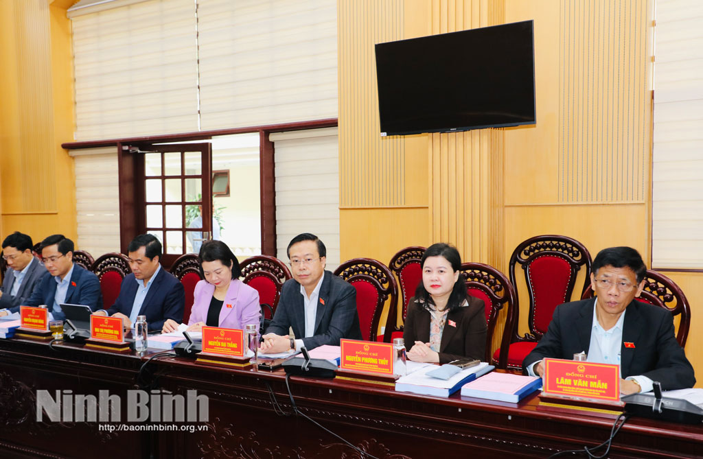 Tiếp và làm việc với Đoàn có các đồng chí: Trần Huy Tuấn, Ủy viên Trung ương Đảng, Phó Bí thư Tỉnh ủy, Chủ tịch UBND tỉnh, Phó Trưởng Ban Chỉ đạo cuộc bầu cử tỉnh, Chủ tịch Ủy ban Bầu cử tỉnh; Đinh Thị Lụa, Phó Bí thư Thường trực Tỉnh ủy, Phó Trưởng Ban Chỉ đạo cuộc bầu cử tỉnh; Lê Quốc Chỉnh, Phó Bí thư Tỉnh ủy, Chủ tịch HĐND tỉnh, Phó Trưởng Ban Chỉ đạo cuộc bầu cử tỉnh; các đồng chí Phó Chủ tịch Ủy ban Bầu cử tỉnh; lãnh đạo HĐND tỉnh, UBND tỉnh; Trưởng các tiểu ban giúp việc; đại diện lãnh đạo một số sở, ban, ngành có liên quan và Ủy ban Bầu cử phường Hoa Lư và phường Nam Hoa Lư.