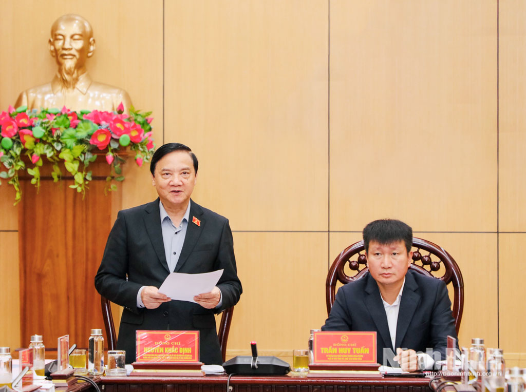 Phát biểu tại buổi làm việc, đồng chí Nguyễn Khắc Định, Phó Chủ tịch Quốc hội ghi nhận và đánh giá cao tinh thần trách nhiệm, sự chủ động, khẩn trương của Tỉnh ủy, HĐND, UBND, Ủy ban MTTQ Việt Nam tỉnh, Ban Chỉ đạo và Ủy ban Bầu cử các cấp tỉnh Ninh Bình trong công tác chuẩn bị bầu cử. Các bước đã được triển khai được thực hiện nghiêm túc, đúng quy trình, thể hiện rõ vai trò lãnh đạo của cấp ủy, chính quyền và sự phối hợp chặt chẽ của các ngành, đoàn thể.