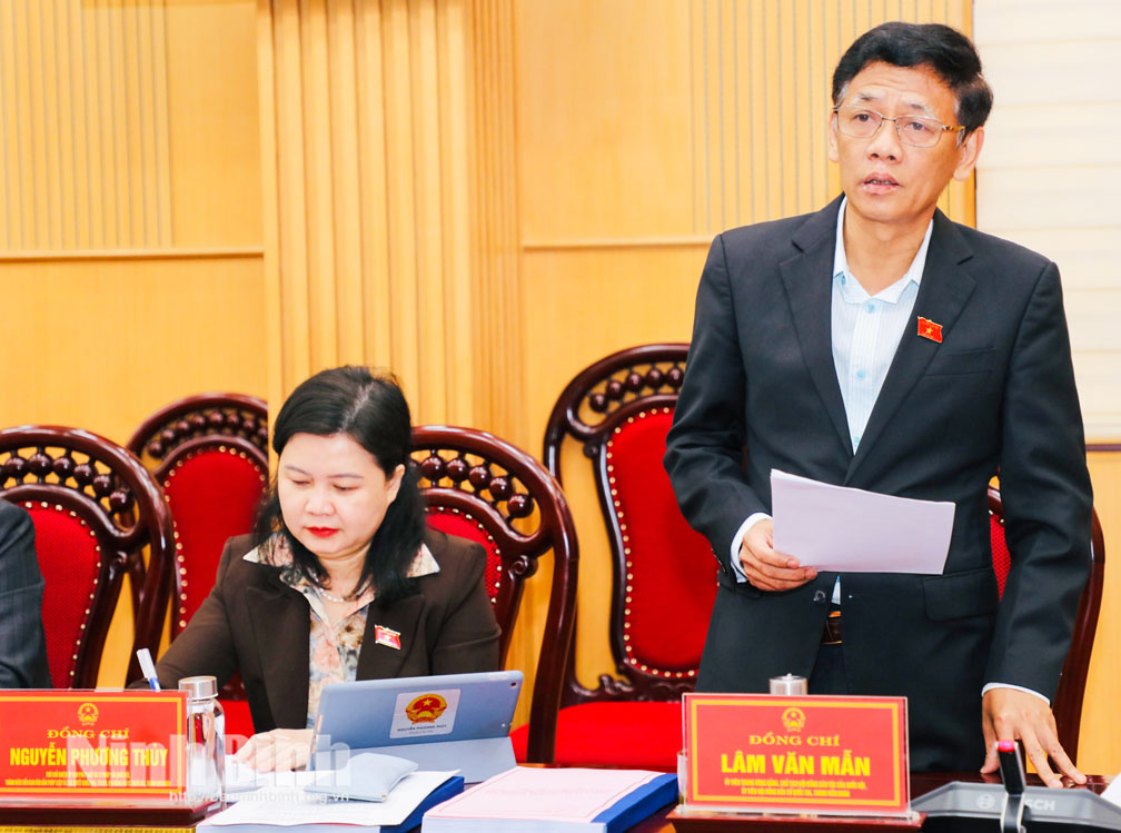 Đồng chí Lâm Văn Mẫn, Ủy viên Trung ương Đảng, Chủ tịch Hội đồng Dân tộc của Quốc hội, Ủy viên Hội đồng bầu cử Quốc gia phát biểu tại buổi làm việc.