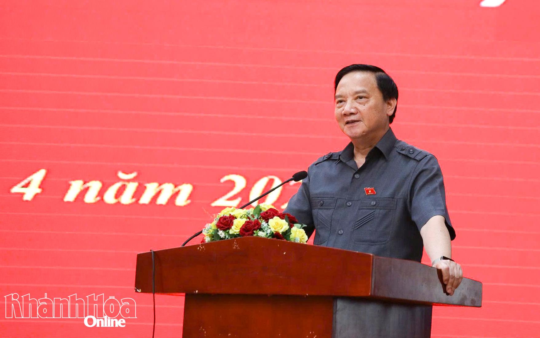 Đồng chí Nguyễn Khắc Định phát biểu tại buổi tiếp xúc cử tri.