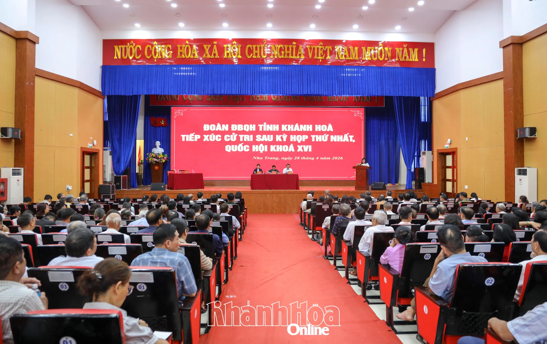 Sáng 28-4, đại biểu Quốc hội tỉnh Khánh Hòa gồm các đồng chí: Nguyễn Khắc Định - Ủy viên Trung ương Đảng, Phó Chủ tịch Quốc hội; Lê Hữu Trí - Phó Trưởng đoàn chuyên trách Đoàn Đại biểu Quốc hội tỉnh; bà Nguyễn Thanh Ngân - bác sĩ chuyên khoa cấp II, Phó Trưởng phòng Kế hoạch - Tổng hợp, Bệnh viện Đa khoa Khánh Hòa tiếp xúc cử tri sau Kỳ họp thứ nhất, Quốc hội khóa XVI với cử tri 3 phường: Nha Trang, Nam Nha Trang và Tây Nha Trang.