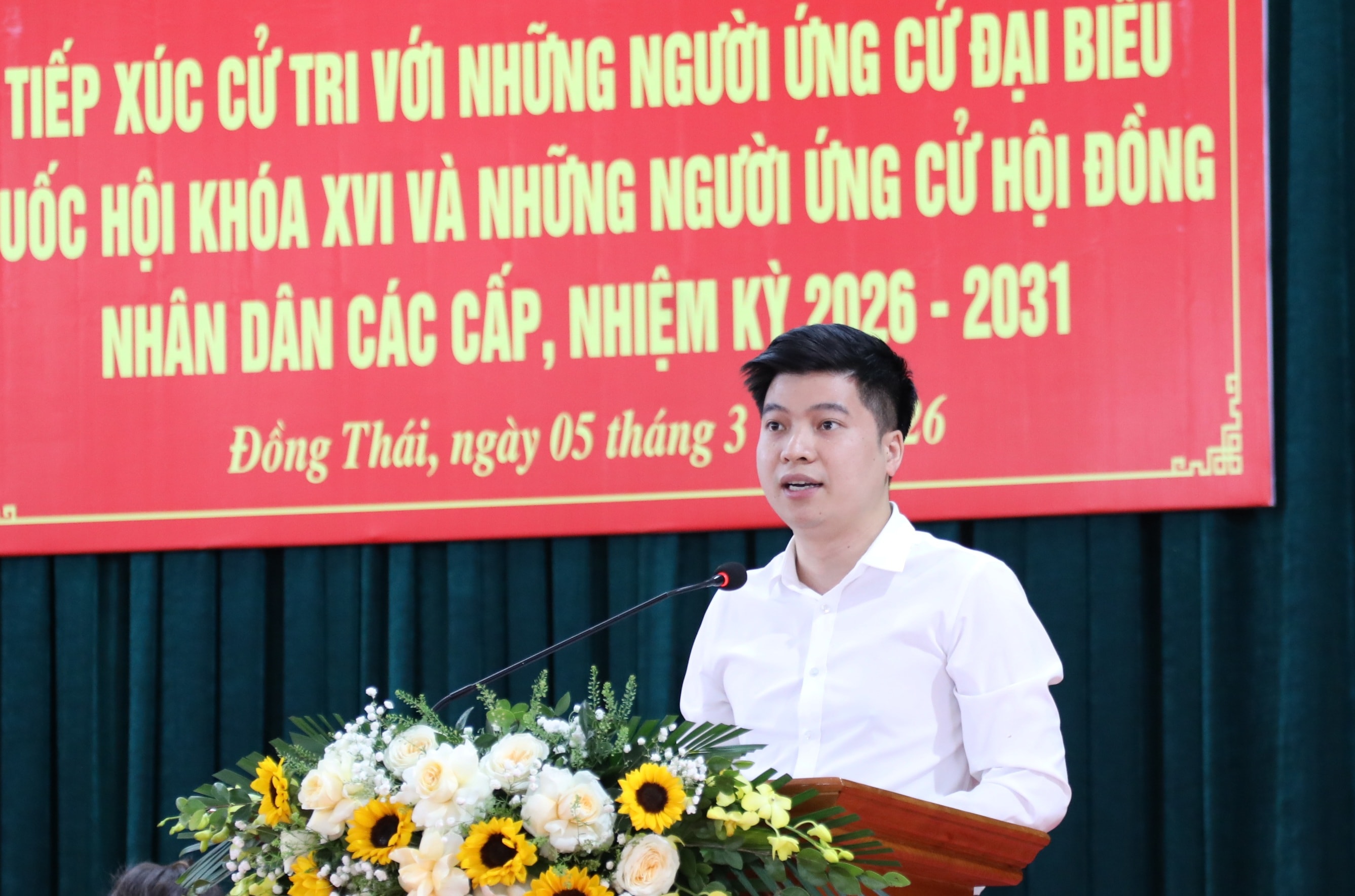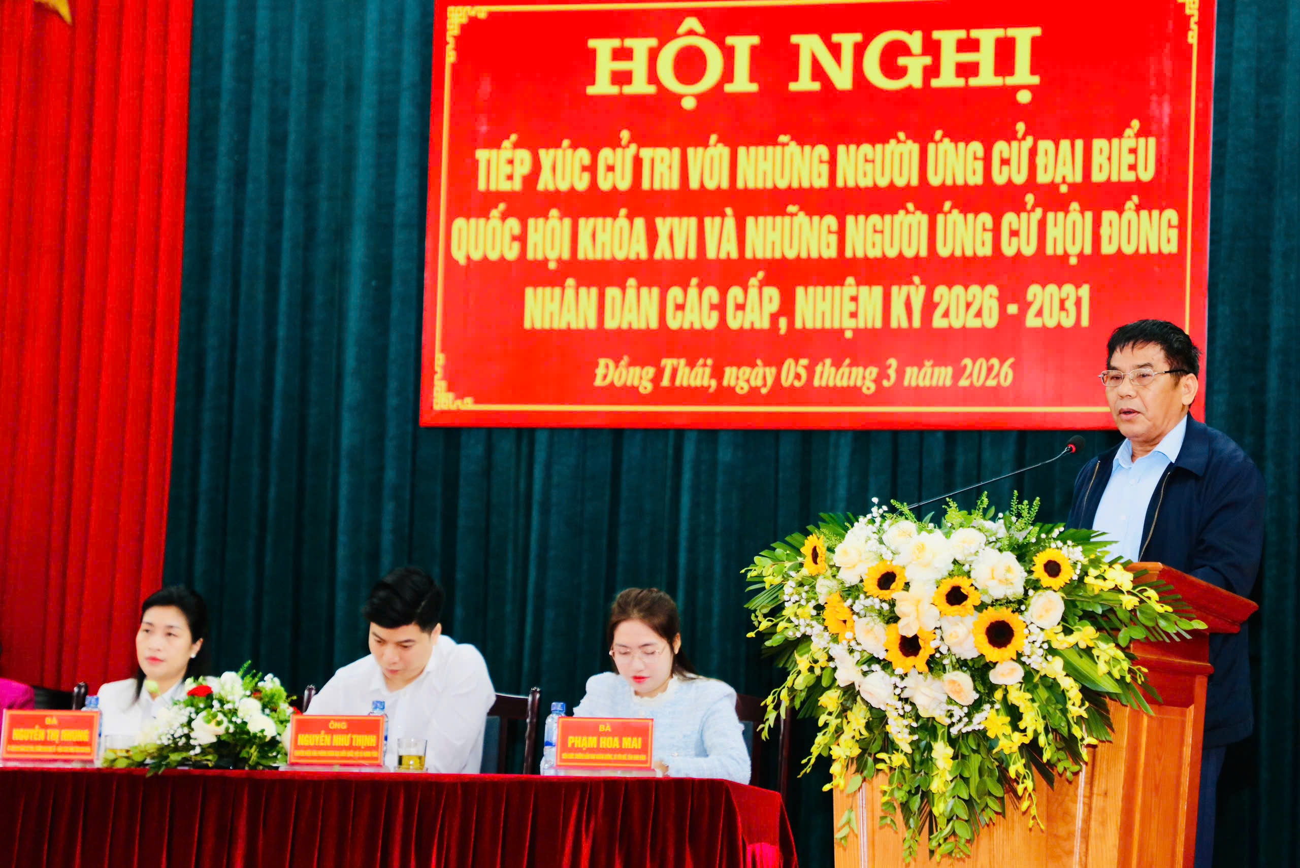 + Sáng cùng ngày, Ủy ban MTTQ Việt Nam xã Đồng Thái đã tổ chức Hội nghị tiếp xúc cử tri với người ứng cử ĐBQH Khóa XVI và đại biểu HĐND tỉnh Ninh Bình Khóa XVI, nhiệm kỳ 2026 - 2031 tại đơn vị bầu cử số 4.