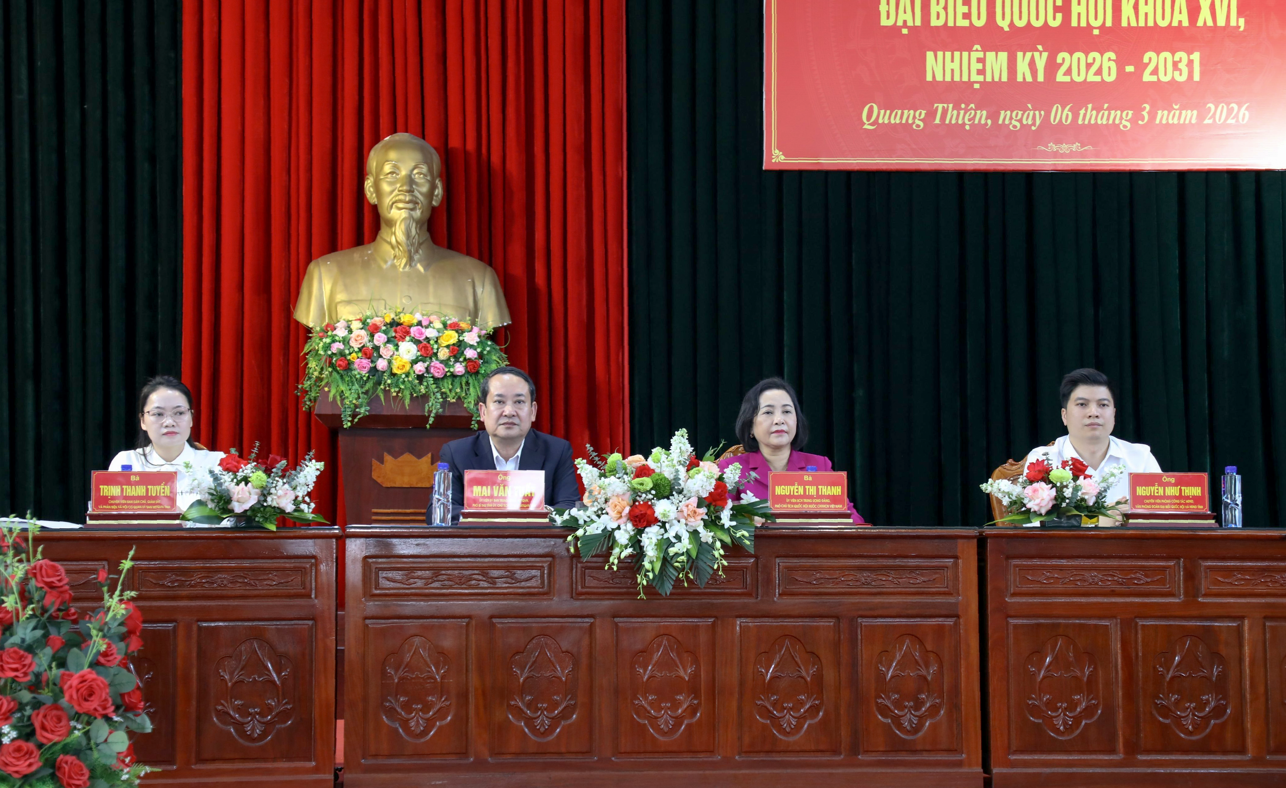 Đối với những ý kiến của cử tri xã Quang Thiện, Phó Bí thư Tỉnh ủy Mai Văn Tuất đề nghị giao cho Ban Thường trực Ủy ban Mặt trận Tổ quốc Việt Nam tỉnh tổng hợp báo cáo các cơ quan có thẩm quyền xem xét giải quyết.