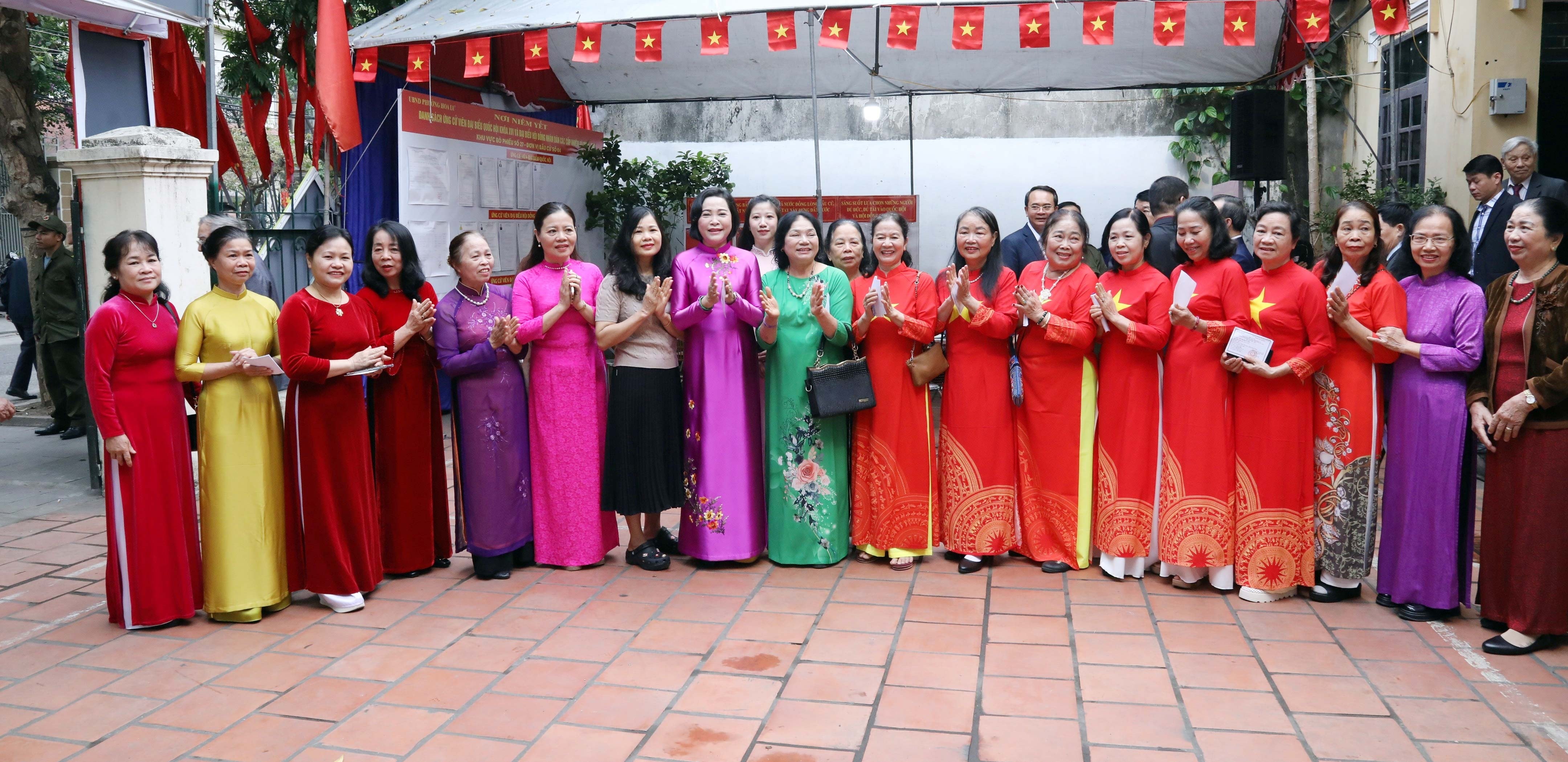 Phó Chủ tịch Quốc hội Nguyễn Thị Thanh cùng các cử tri chụp ảnh lưu niệm