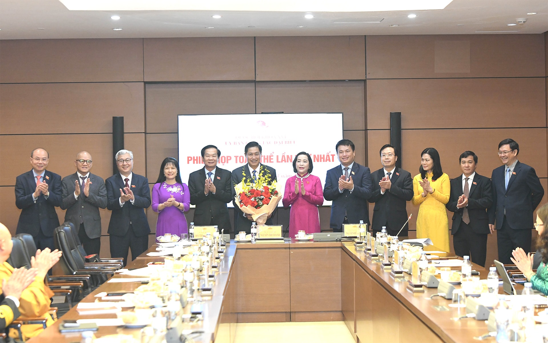 Phó Chủ tịch Quốc hội Nguyễn Thị Thanh tặng hoa chúc mừng Thường trực Ủy ban Công tác Đại biểu
