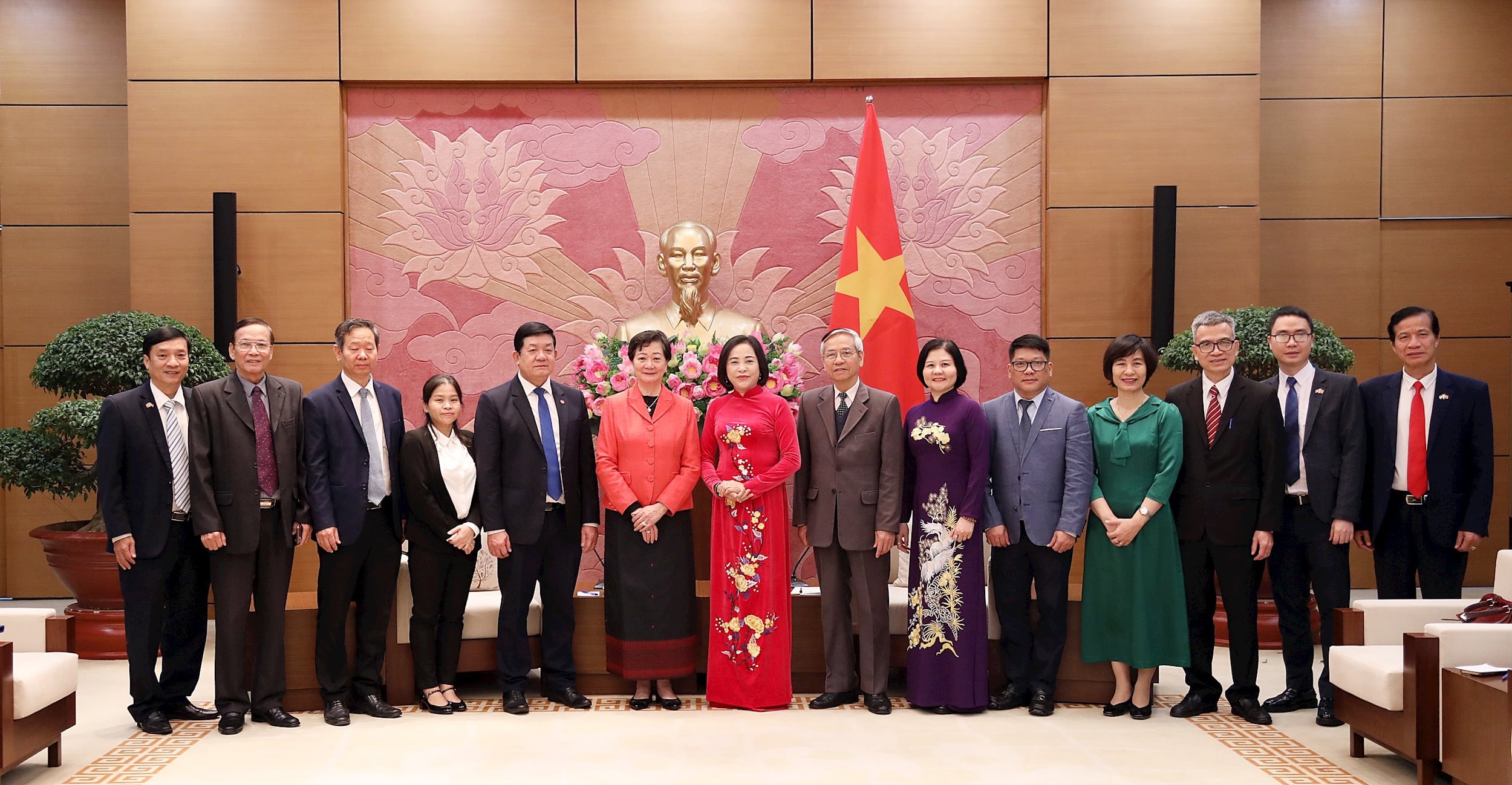Phó Chủ tịch Quốc hội Nguyễn Thị Thanh tặng hoa chúc mừng Đại sứ Chea Kimtha hoàn thành xuất sắc nhiệm vụ, kết thúc nhiệm kỳ công tác tại Việt Nam