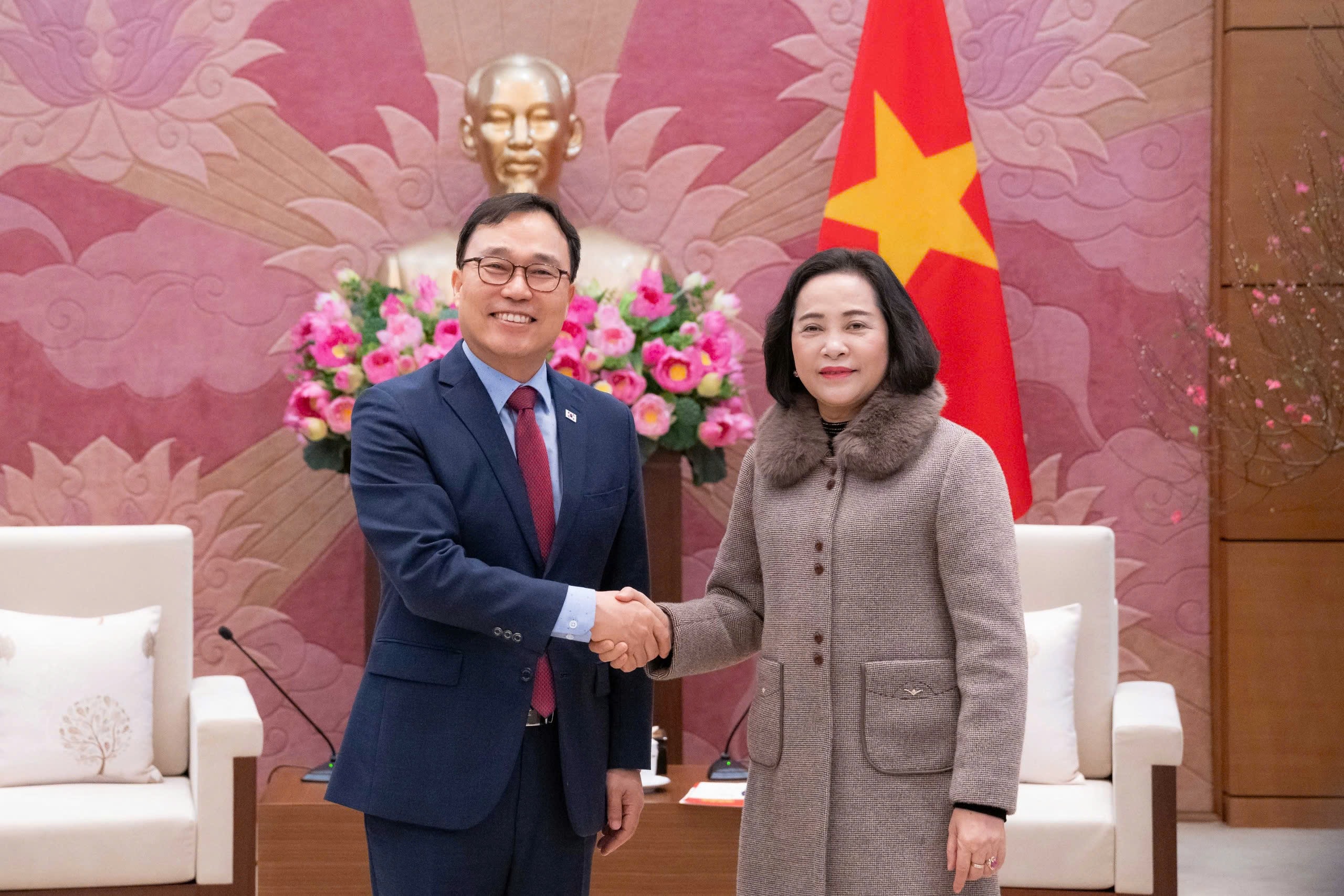 Phó Chủ tịch Quốc hội đánh giá cao những nỗ lực của Đại sứ và cán bộ, nhân viên Đại sứ quán Hàn Quốc tại Việt Nam vào các thành quả tích cực trong quan hệ Việt Nam - Hàn Quốc thời gian qua; đề nghị Đại sứ tiếp tục triển khai hiệu quả các thỏa thuận đạt được giữa lãnh đạo cấp cao hai nước, phát huy vai trò cầu nối để lãnh đạo cấp cao hai nước gặp gỡ, tiếp xúc nhằm trao đổi, duy trì và củng cố tin cậy chính trị, sự hiểu biết giữa hai nước và hỗ trợ, thúc đẩy hợp tác đào tạo nguồn nhân lực, văn hóa, du lịch và giao lưu nhân dân, tạo sự gắn kết giữa nhân dân hai nước.