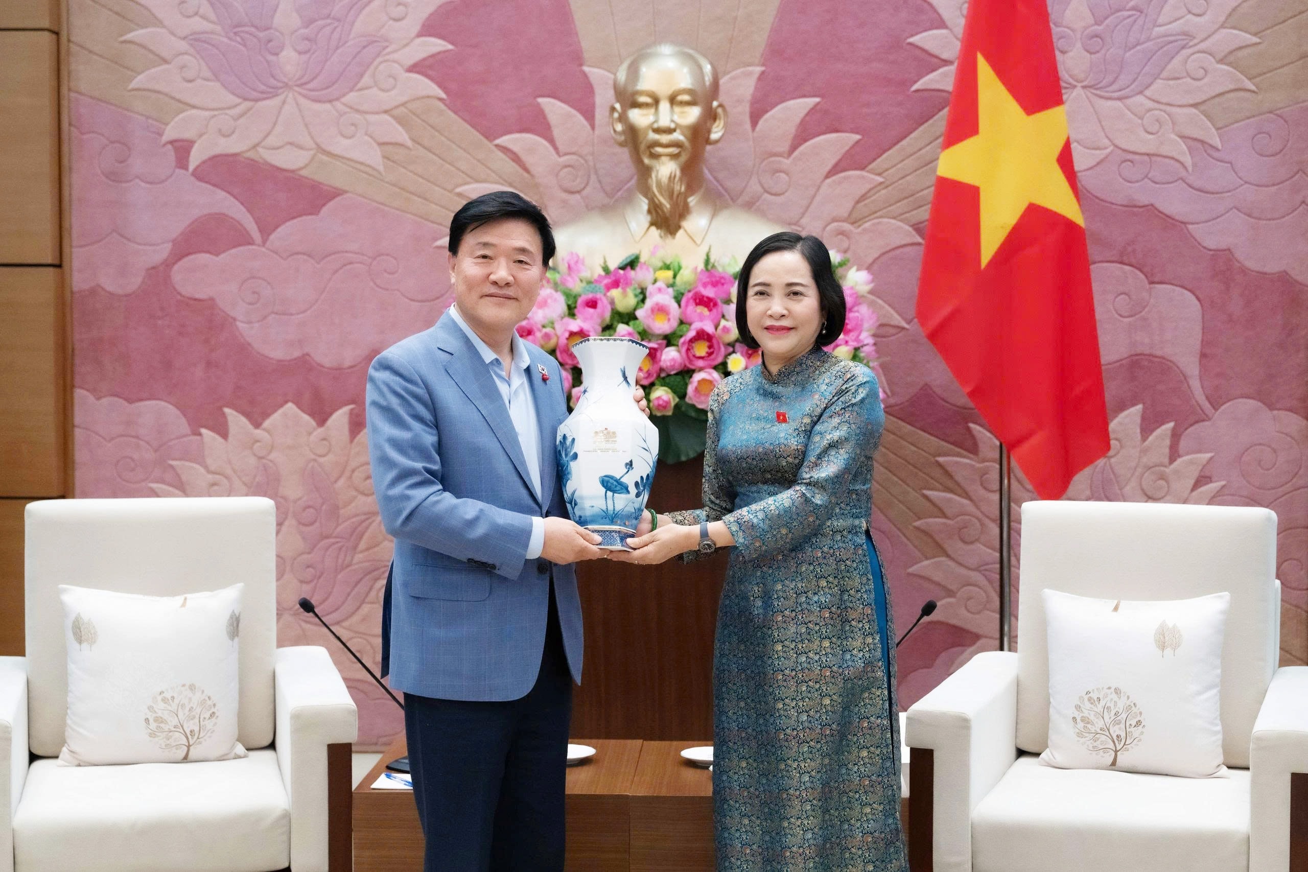 Phó Chủ tịch Quốc hội Nguyễn Thị Thanh trao quà lưu niệm tặng Giáo sư Kim Hak-Min