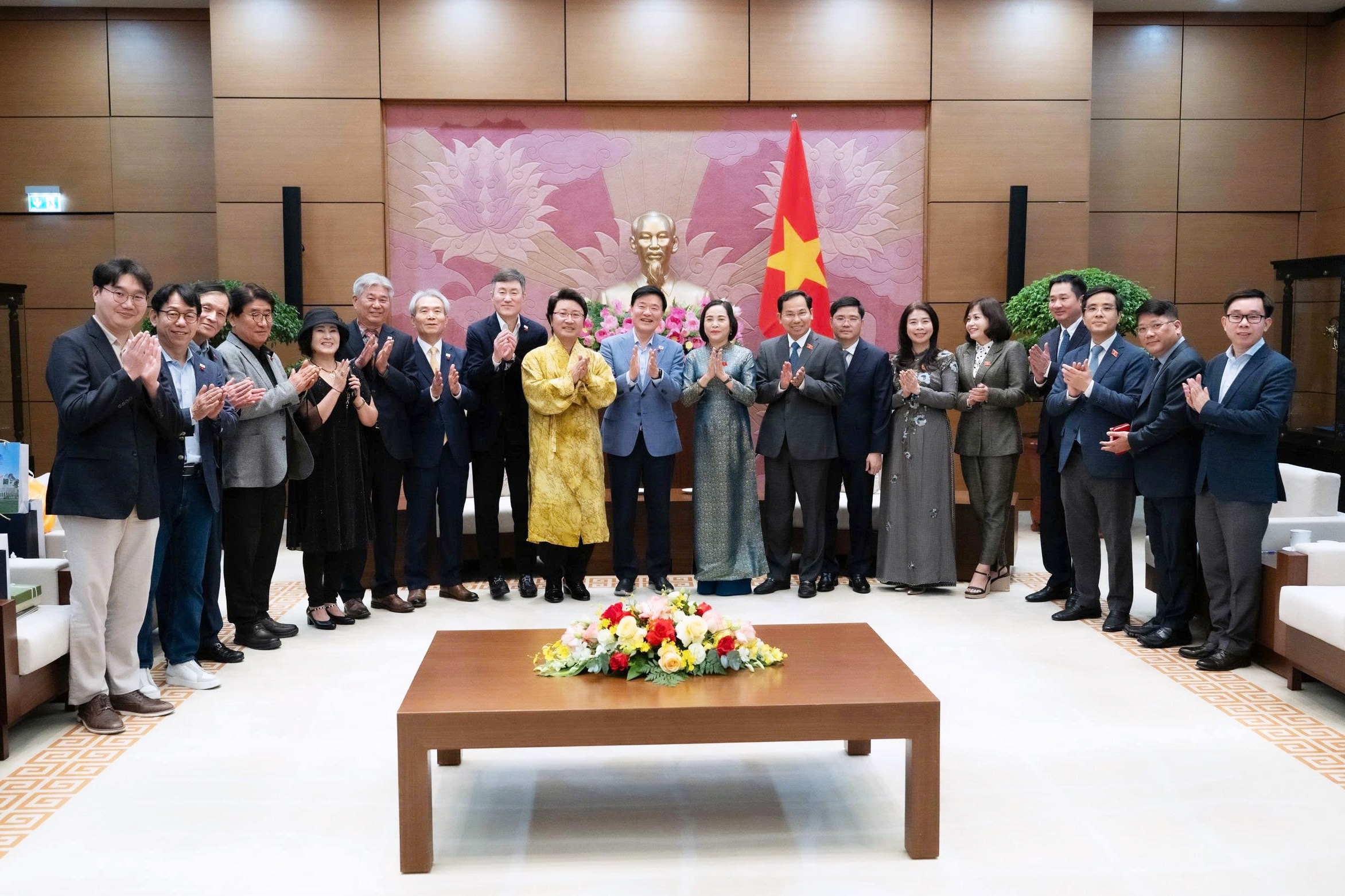 Phó Chủ tịch Quốc hội Nguyễn Thị Thanh, Giáo sư Kim Hak-Min và các đại biểu hai nước chụp ảnh lưu niệm