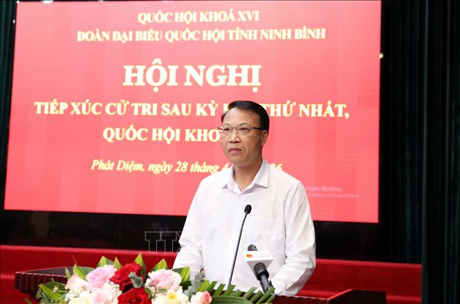 Phó Bí thư Tỉnh ủy, Trưởng Đoàn đại biểu Quốc hội tỉnh Ninh Bình Mai Văn Tuất đã báo cáo với cử tri về kết quả Kỳ họp thứ Nhất, Quốc hội khóa XVI. Theo đó, sau 12 ngày làm việc khẩn trương, nghiêm túc, với tinh thần khoa học, đổi mới, trách nhiệm cao, Kỳ họp thứ Nhất, Quốc hội khóa XVI đã hoàn thành toàn bộ nội dung, chương trình đề ra. Tại Kỳ họp, Quốc hội đã xem xét, thông qua 9 luật, 5 nghị quyết quy phạm pháp luật; quyết định các vấn đề về kinh tế - xã hội, tài chính, ngân sách; xem xét, thông qua chương trình giám sát của Quốc hội, thành lập Đoàn giám sát chuyên đề của Quốc hội năm 2027; xem xét báo cáo về tổng hợp kiến nghị của cử tri và nhân dân gửi đến Kỳ họp thứ Nhất, Quốc hội khóa XVI, báo cáo kết quả giám sát việc giải quyết kiến nghị của cử tri, cùng một số nội dung quan trọng khác.