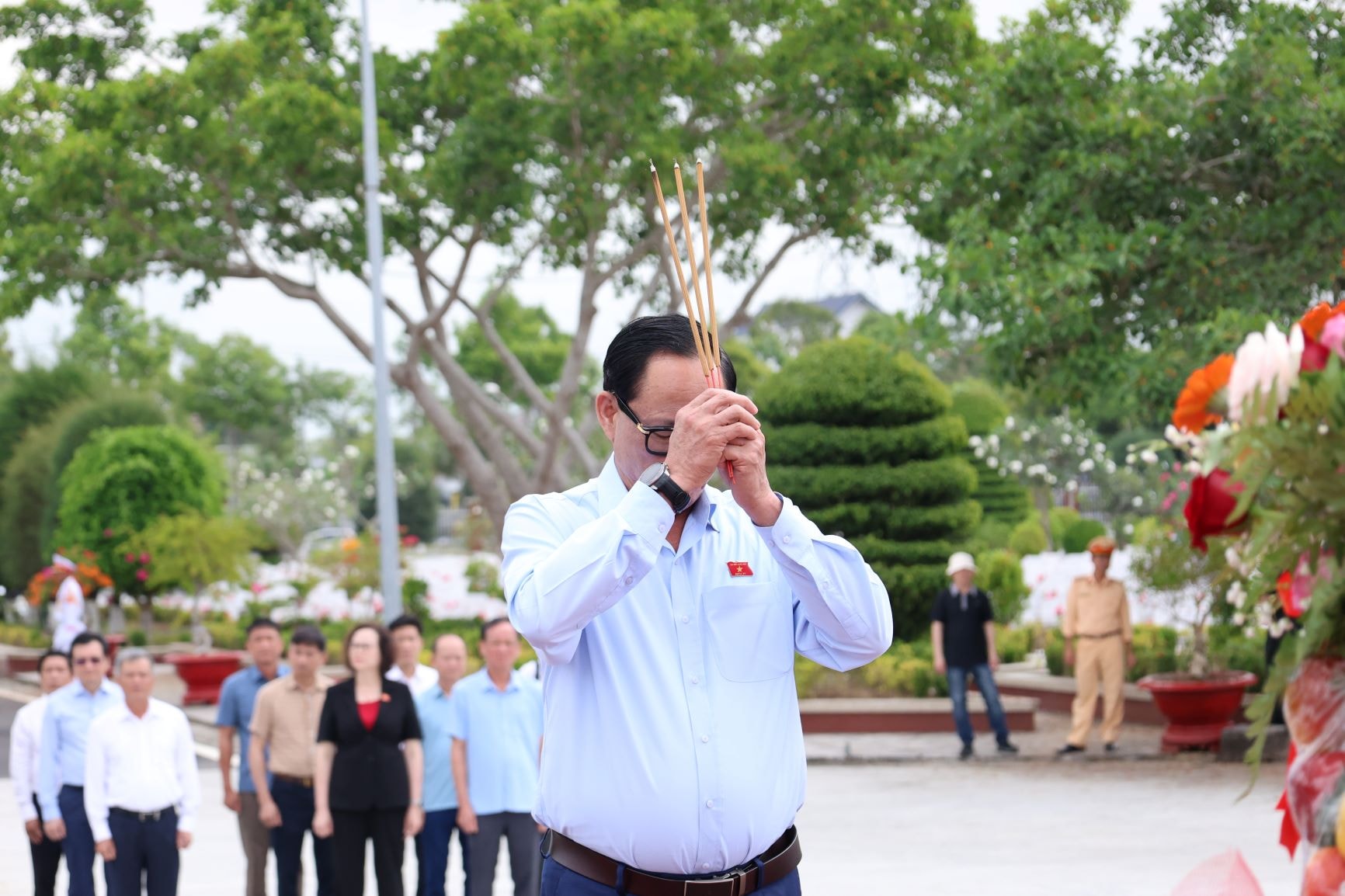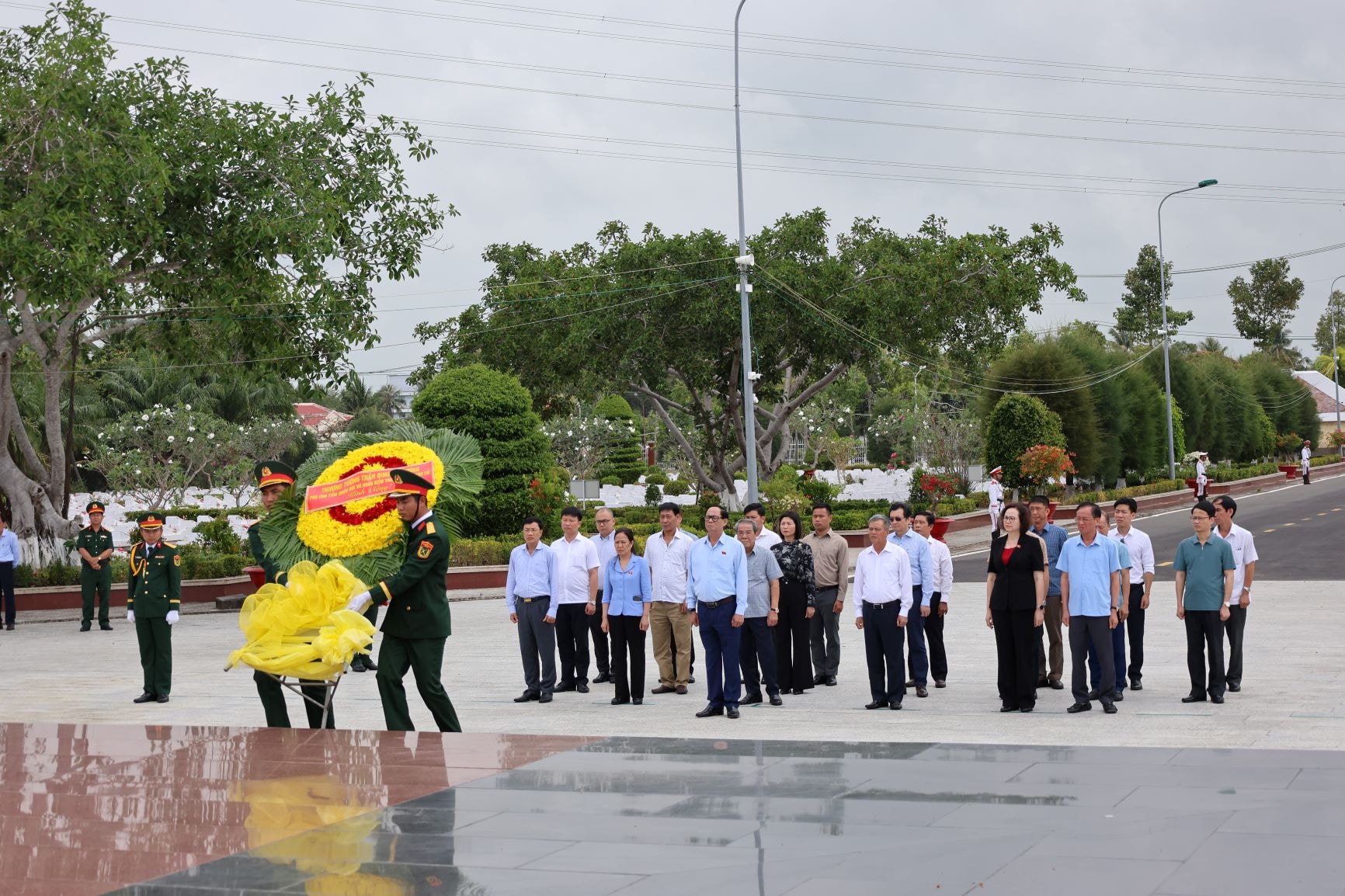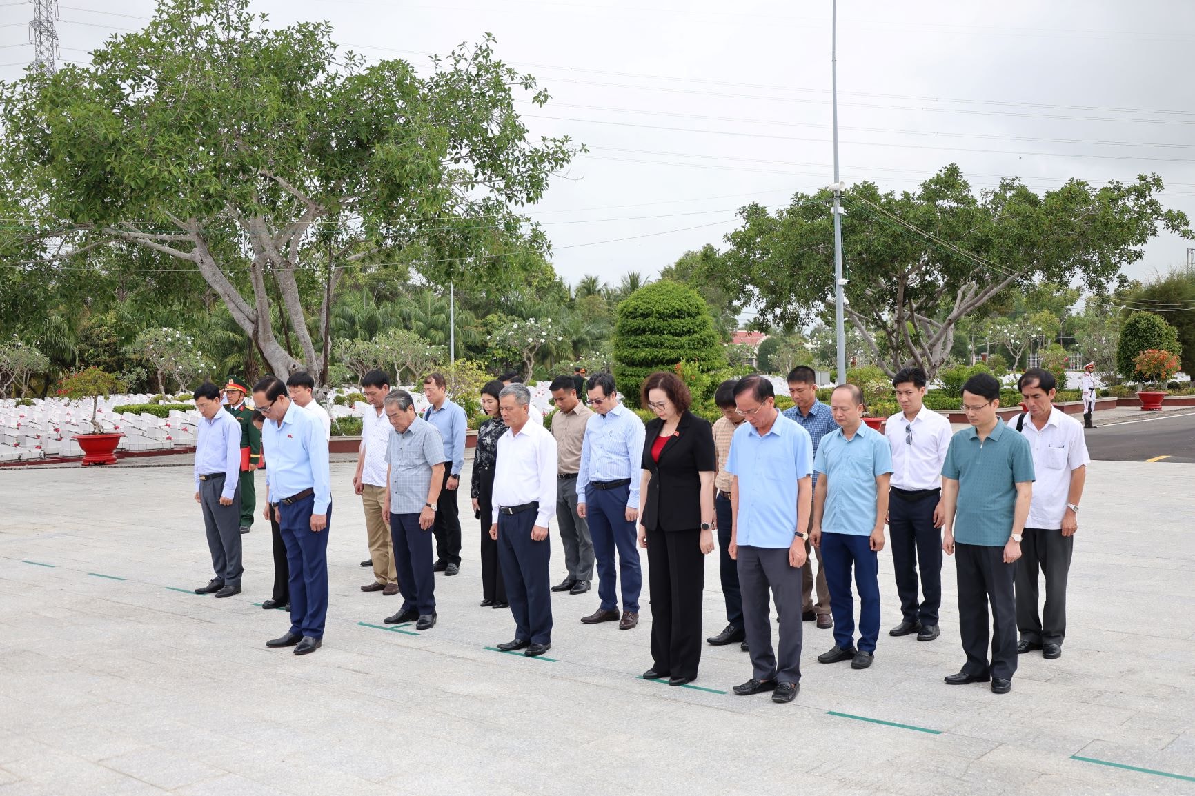 Phó Chủ tịch Quốc hội, Thượng tướng Trần Quang Phương và đoàn công tác dành một phút mặc niệm tưởng nhớ các Anh hùng Liệt sĩ đã hy sinh vì Tổ quốc