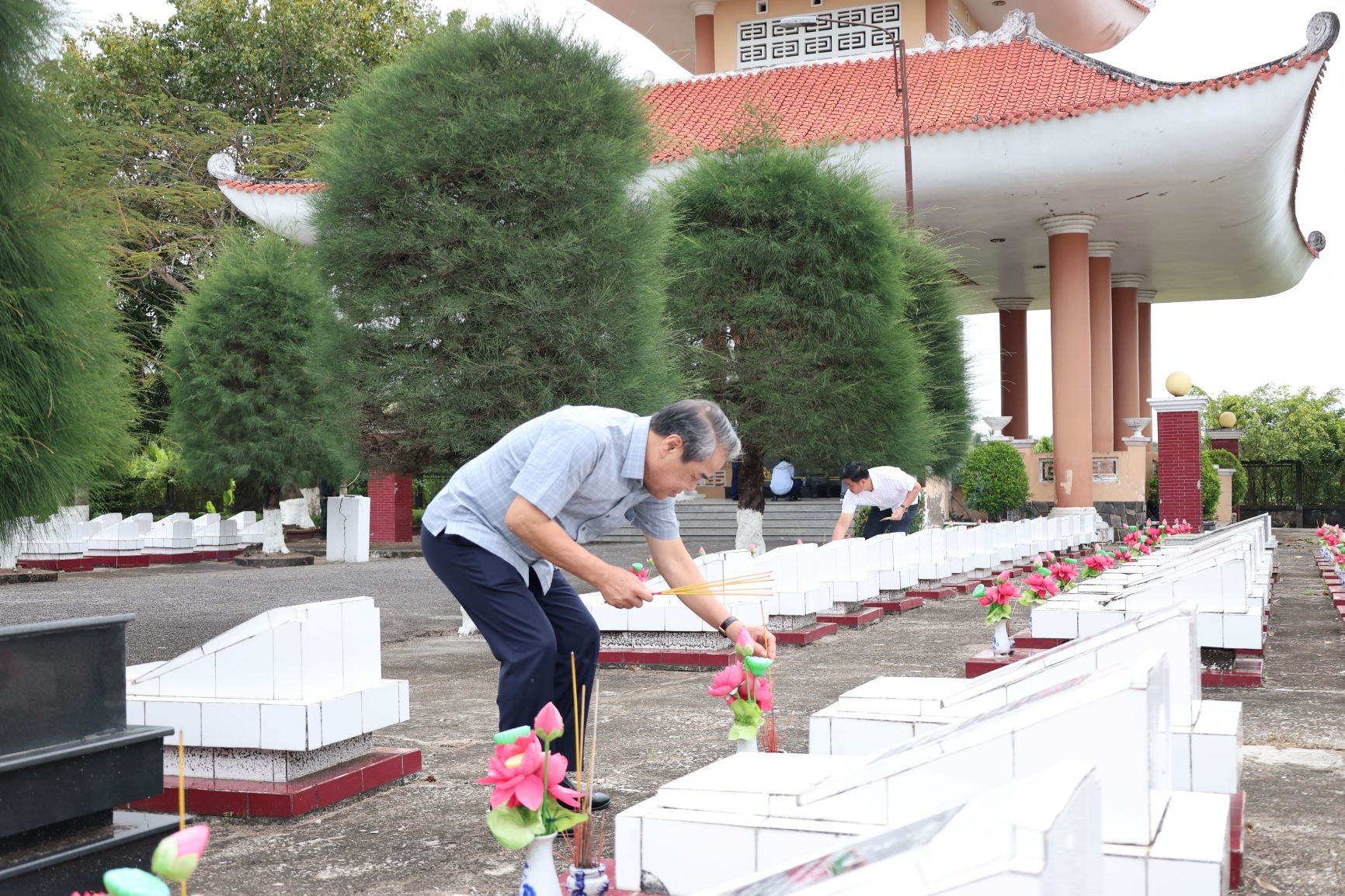 Dưới đây là hình ảnh Phó Chủ tịch Quốc hội Trần Quang Phương và Đoàn công tác dâng hương tưởng niệm các Anh hùng Liệt sĩ tại Nghĩa trang tỉnh An Giang: