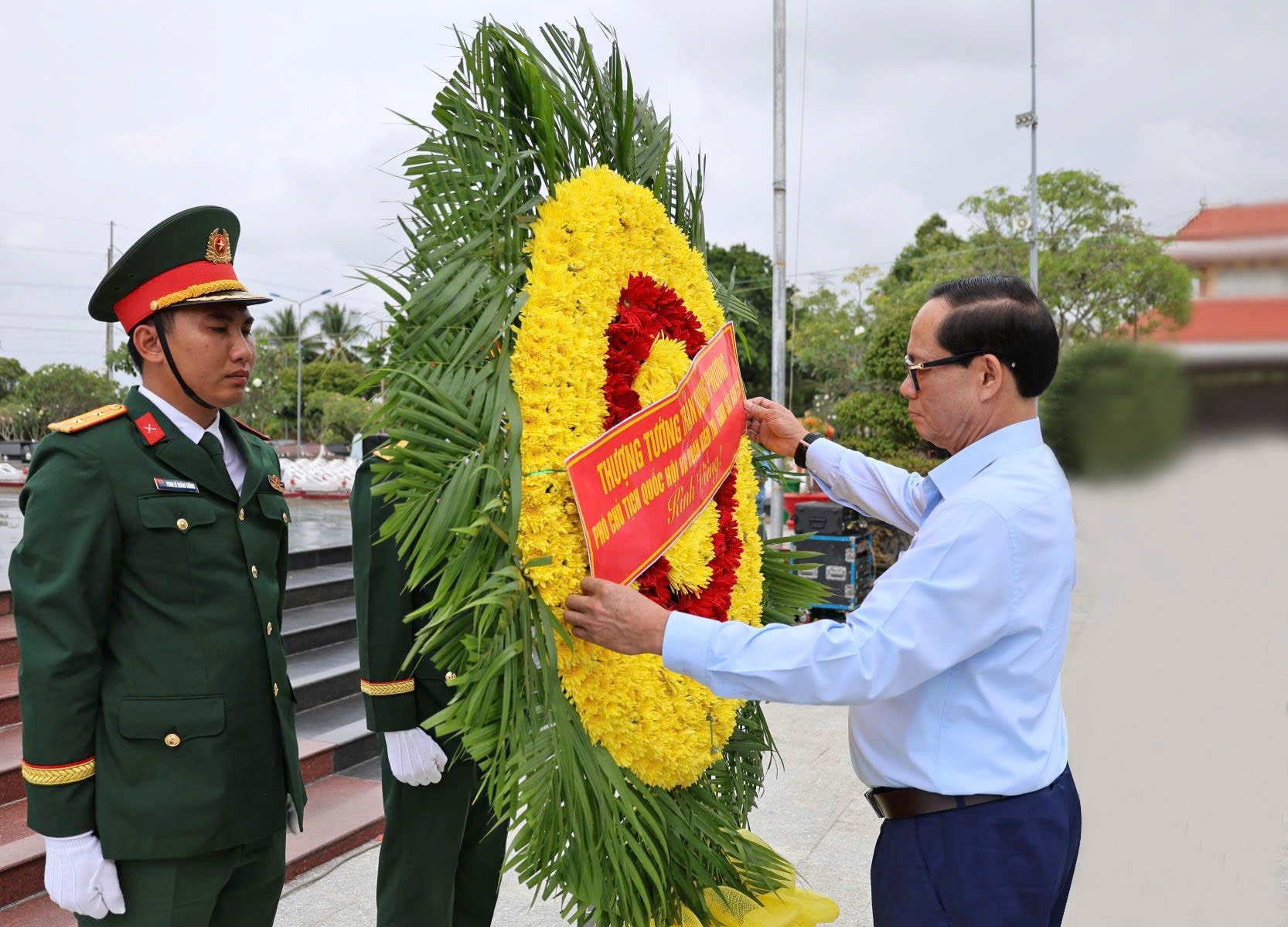 Trong không khí trang nghiêm, Phó Chủ tịch Quốc hội Trần Quang Phương và Đoàn công tác đã dâng hoa, dành một phút mặc niệm và thắp hương tại phần mộ bày tỏ lòng thành kính và biết ơn vô hạn đối với sự hy sinh to lớn của các anh hùng liệt sĩ đã hy sinh anh dũng để bảo vệ Tổ quốc, giành độc lập cho dân tộc, đem lại tự do, hòa bình cho nhân dân.