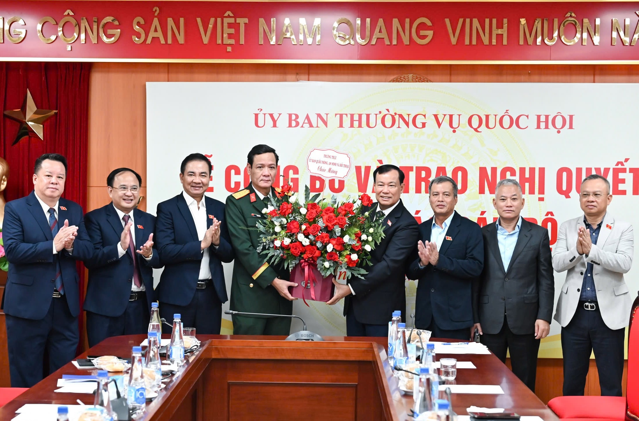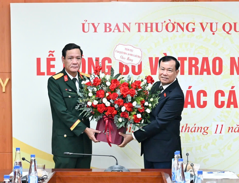 Lãnh đạo Ủy ban Quốc phòng, An ninh và Đối ngoại tặng hoa chúc mừng đồng chí Võ Văn Hội